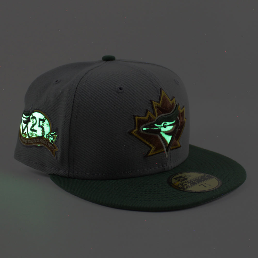 Toronto Blue Jays 25TH Season New Era 59Fifty Fitted Cap in Misty, Cilantro and Gray Under Brim. 28