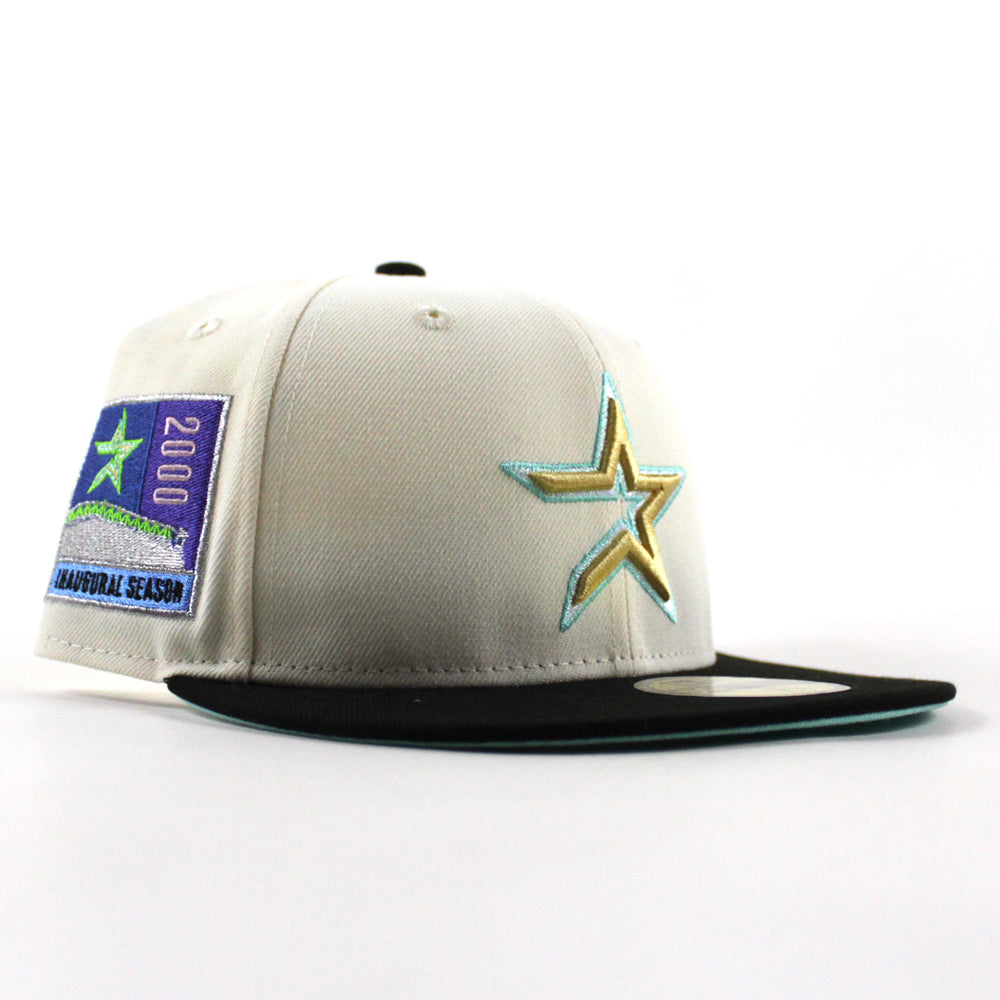 Houston Astros COOPERSTOWN 45th Anniversary New Era 59Fifty Fitted Hat in Chrome White, Black and Turquoise Under Brim.