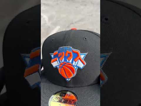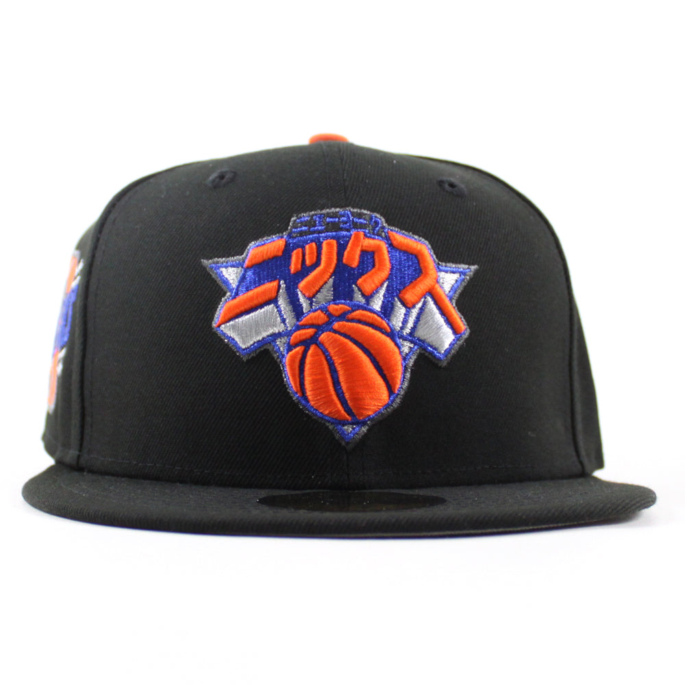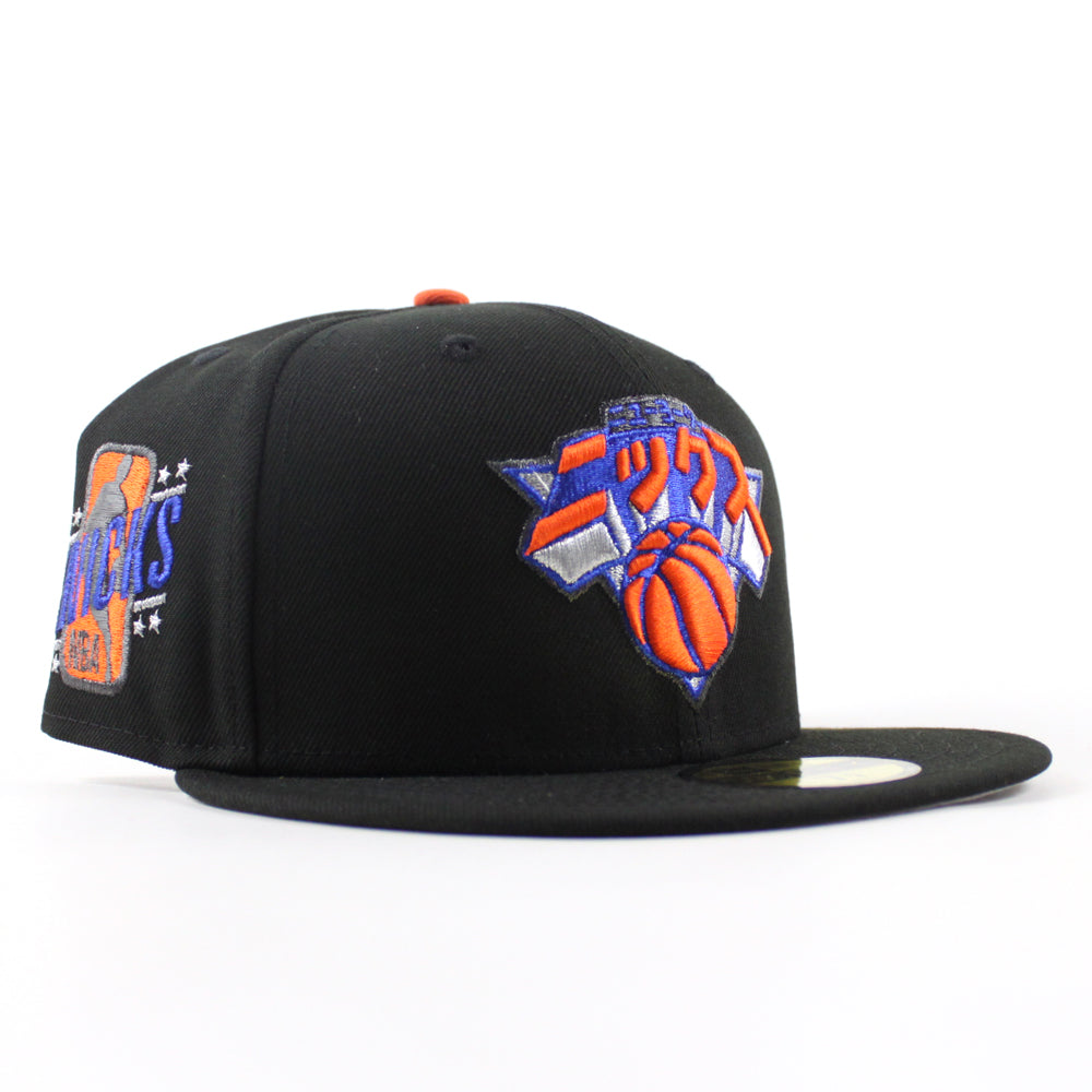 KATAKANA New York Knicks Hyperfly New Era 59Fifty Fitted Hats in Black and Gray Under Brim.