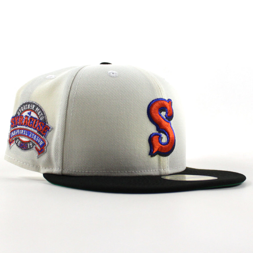 Syracuse Mets Inaugural Season New Era 59Fifty Fitted Hat (Chrome White Black Green Under Brim)