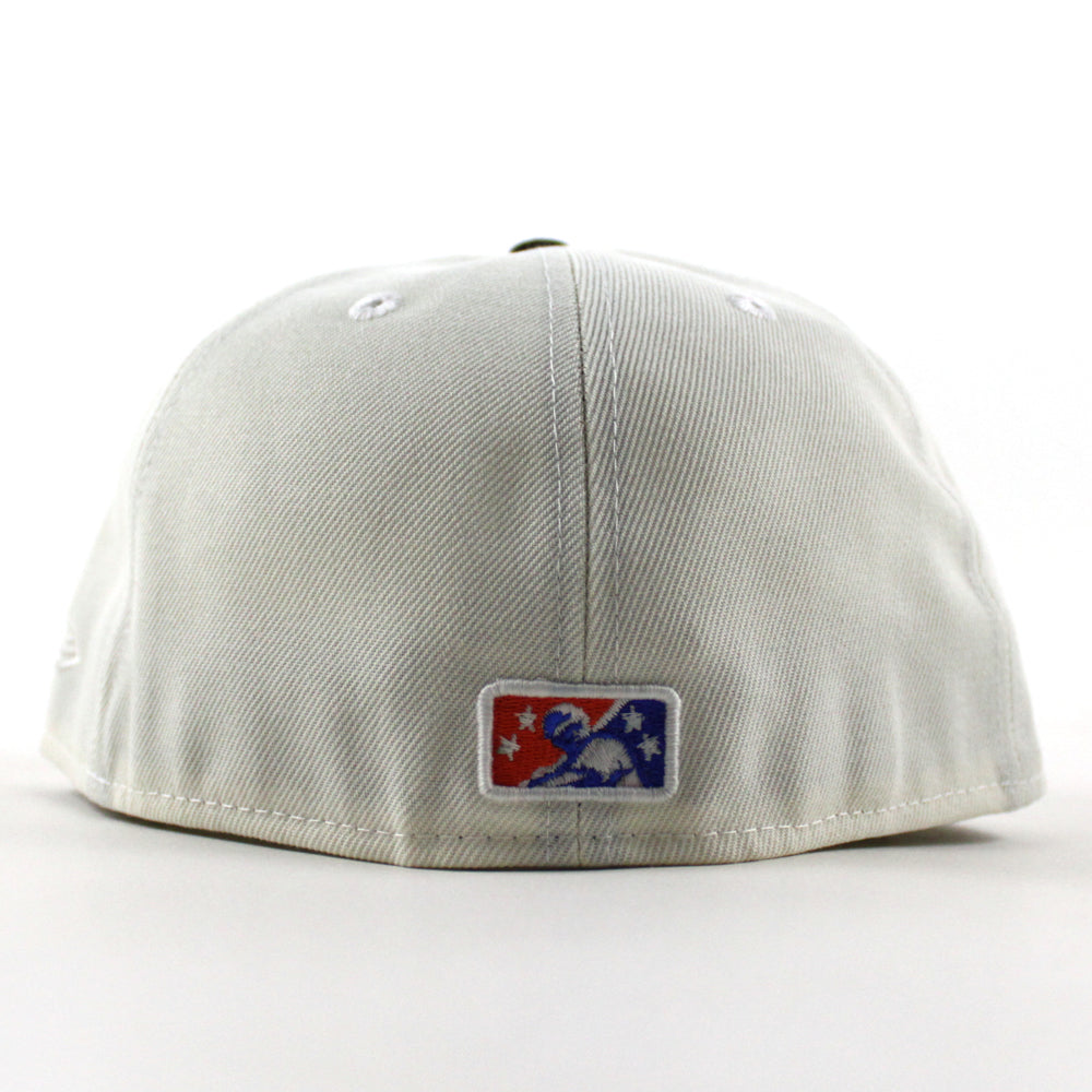 Syracuse Mets Inaugural Season New Era 59Fifty Fitted Hat in Chrome White, Black and Green Under Brim.