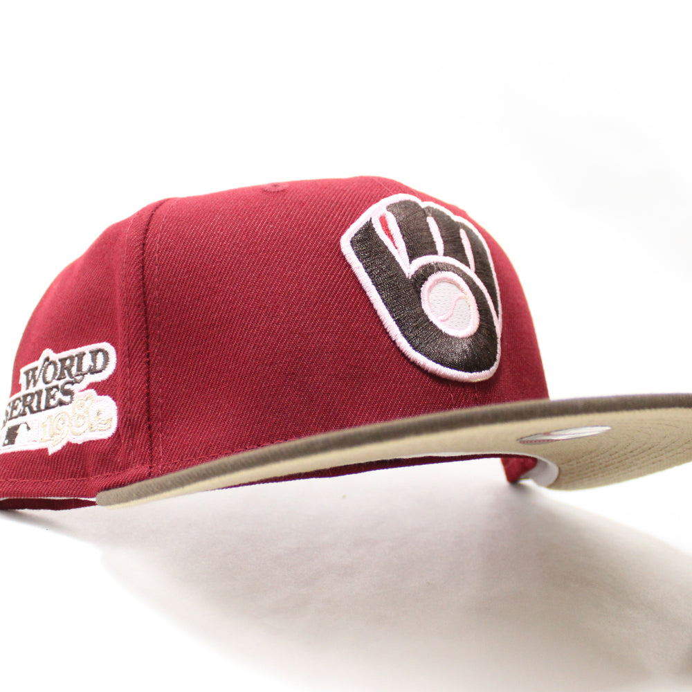 Milwaukee Brewers 1982 World Series New Era 59Fifty Fitted Hat in Cardinal with Brown Visor & Khaki Under Brim.