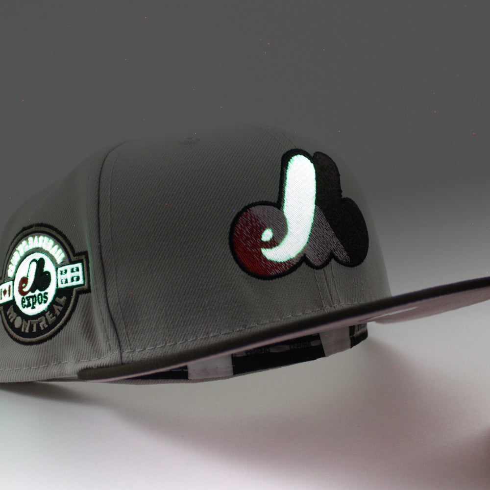 Montreal Expos CLUB DE BASEBALL New Era Fitted 59Fifty Hat (GITD Stone Gray Walnut Pink Under Brim)