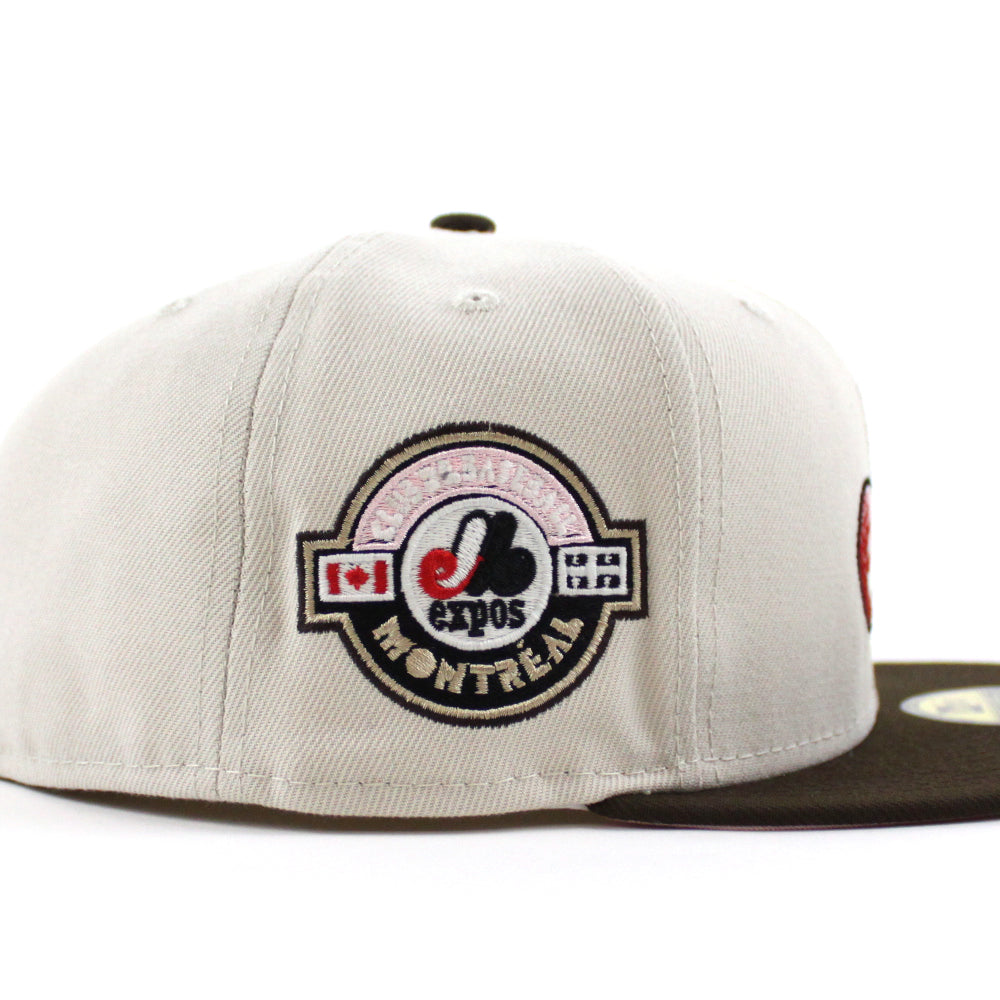 Montreal Expos CLUB DE BASEBALL New Era Fitted 59Fifty Hat in Stone, Walnut and Pink Under Brim.