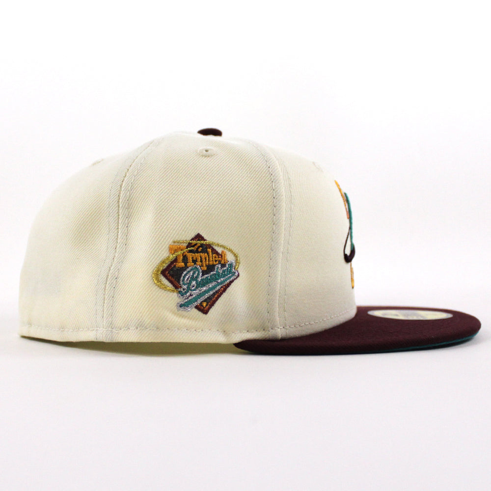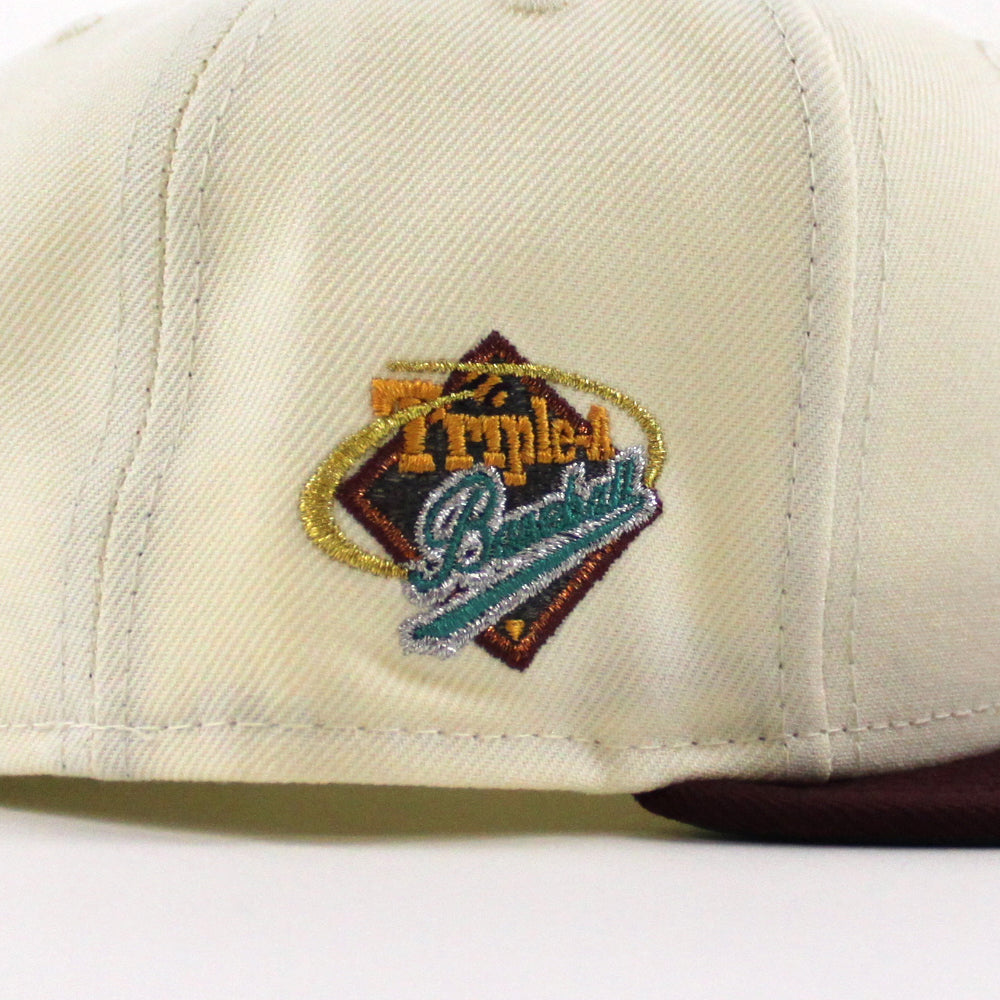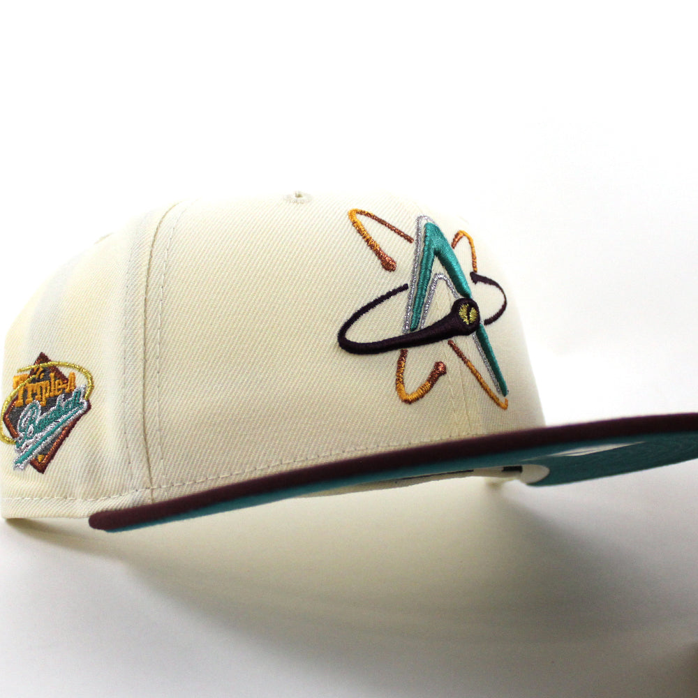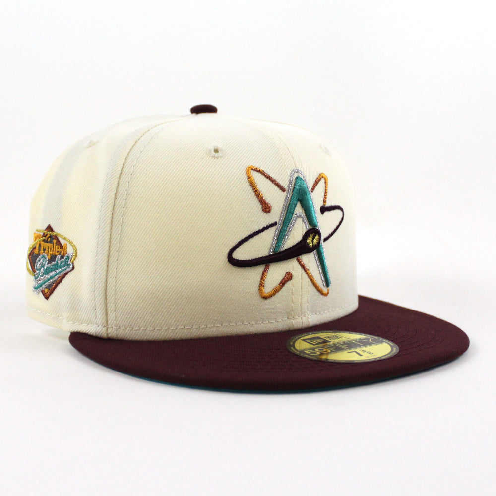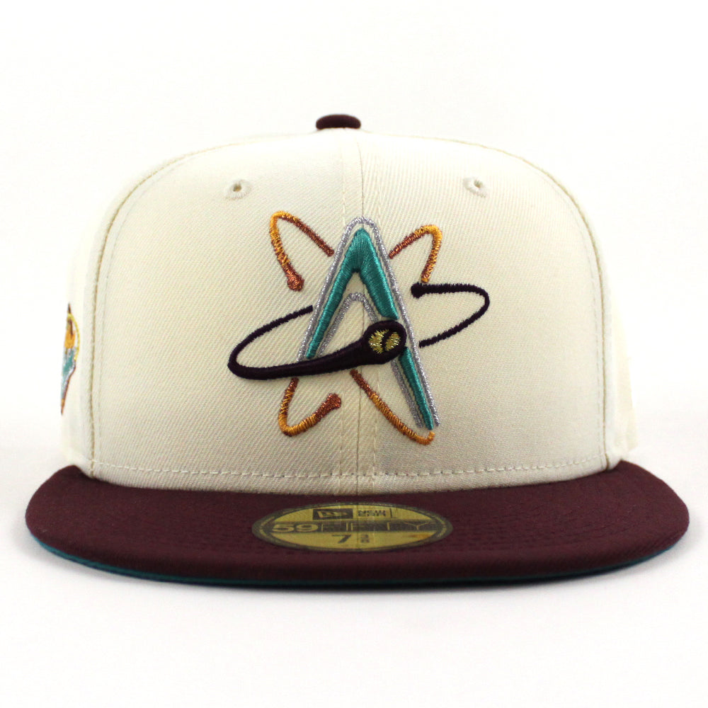 ALBUQUERQUE ISOTOPES Triple A Baseball New Era 59Fifty Fitted Hat (Chrome Maroon Aqua Under Brim)
