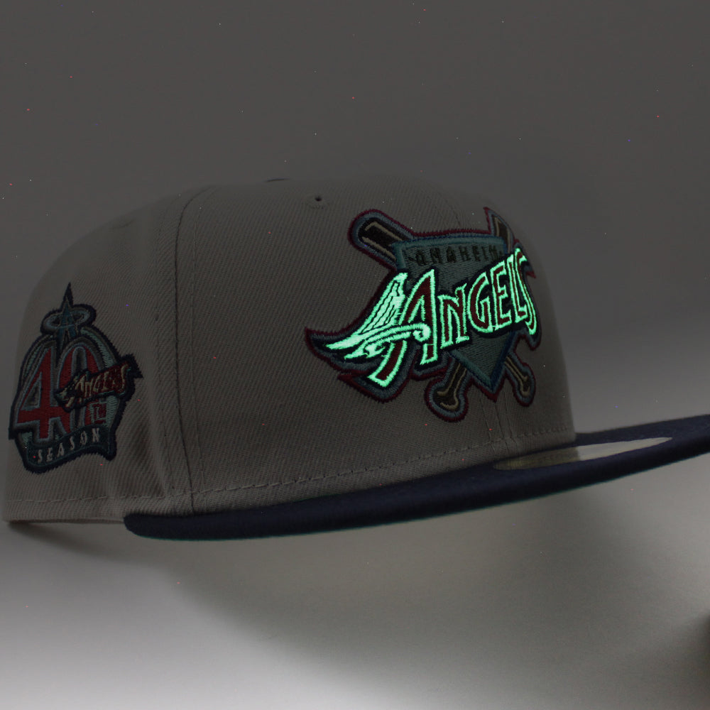 Anaheim Angels 40TH SEASON New Era 59Fifty Fitted Hat (Glow in the Dark STONE NIGHT SHIFT NAVY GREEN Under Brim)