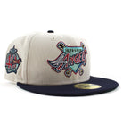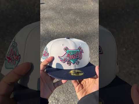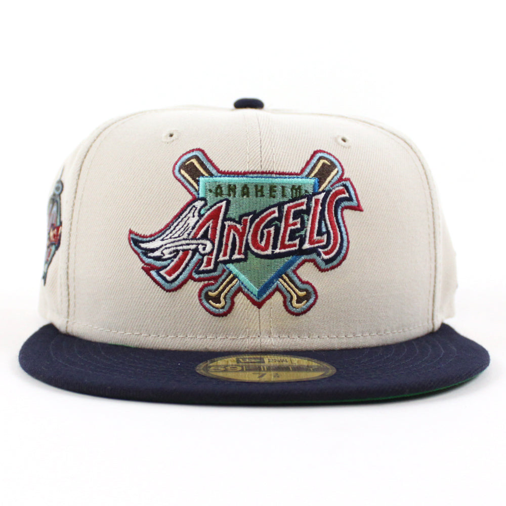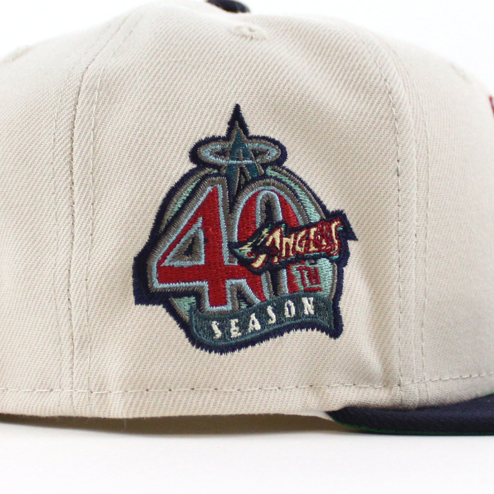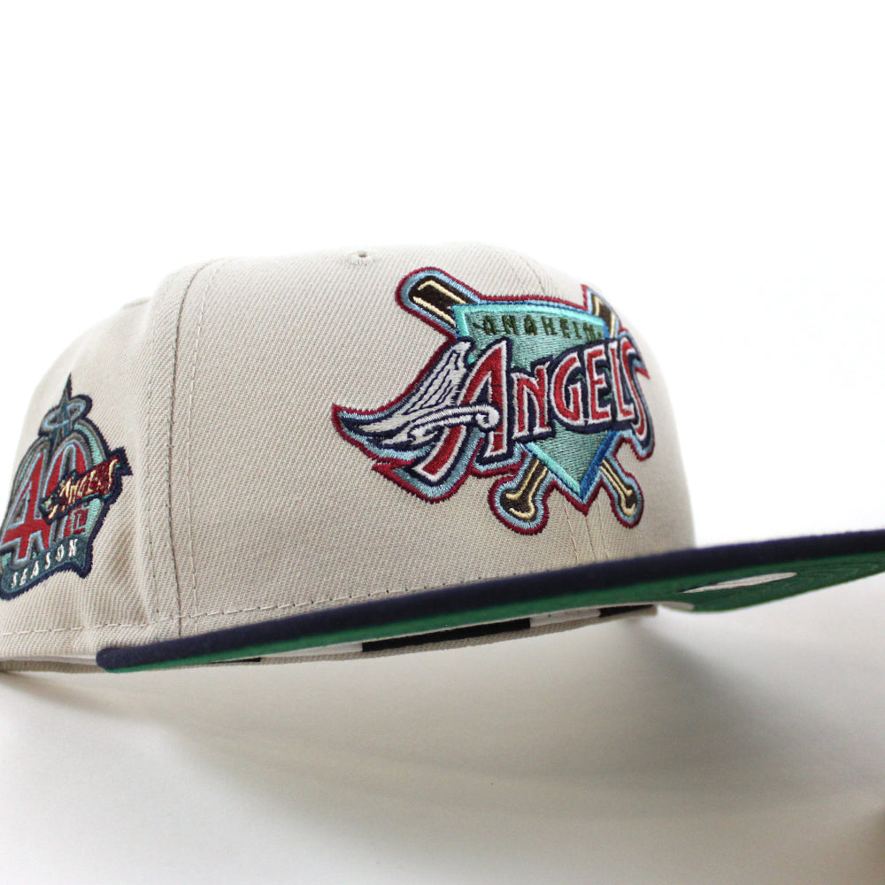 Anaheim Angels 40TH Season New Era 59Fifty Fitted Cap in Stone Night, Navy, and Kelly Green Under Brim.