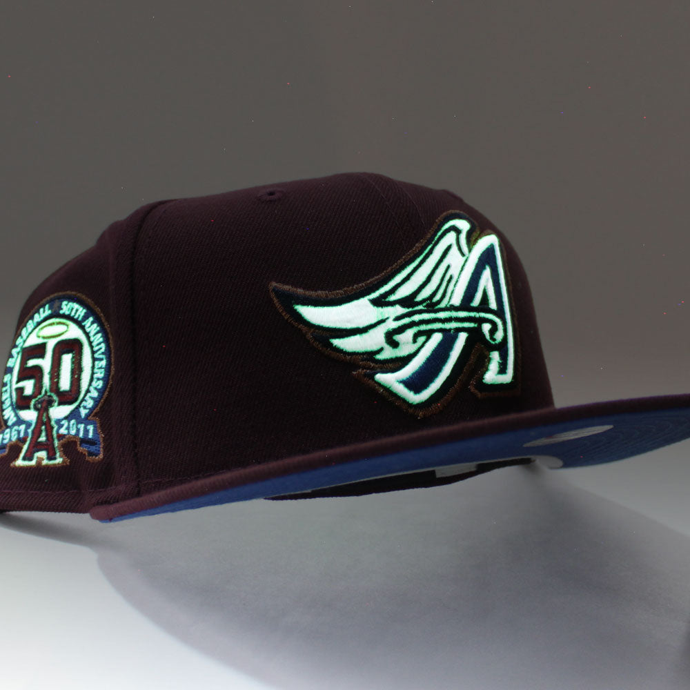 Anaheim Angels 50th Anniversary New Era 59Fifty Fitted Hat (Glow in the Dark Maroon Blue Under Brim)
