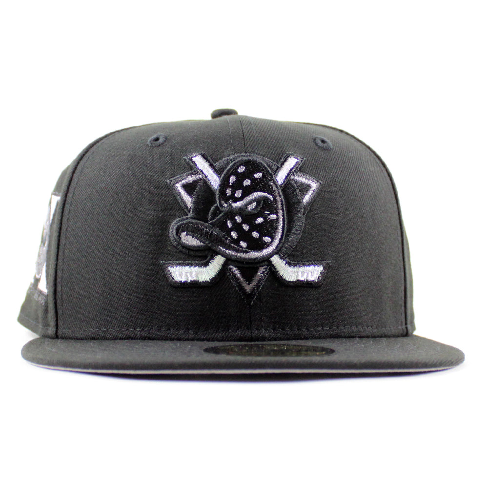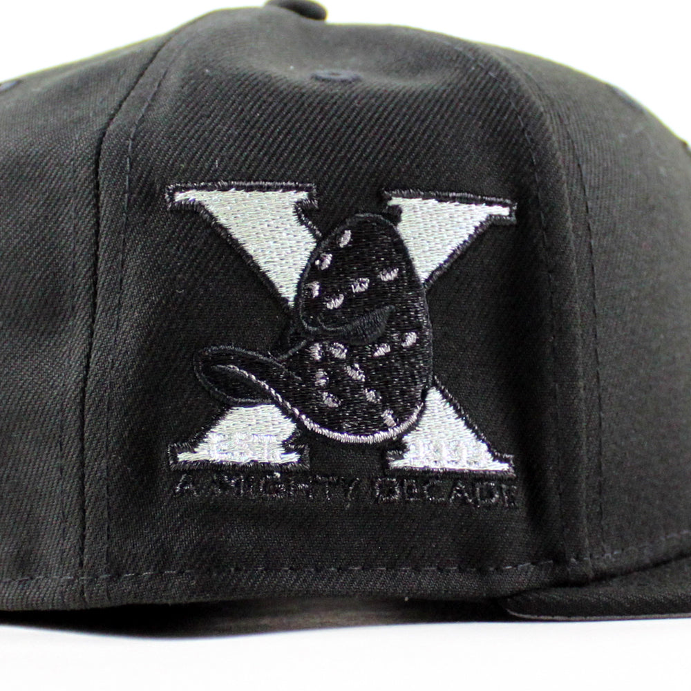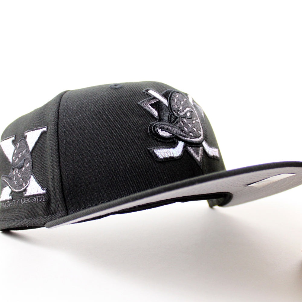 Anaheim Ducks A Mighty Decade 1993 New Era 59Fifty Fitted Hat in Black and Gray Under brim.