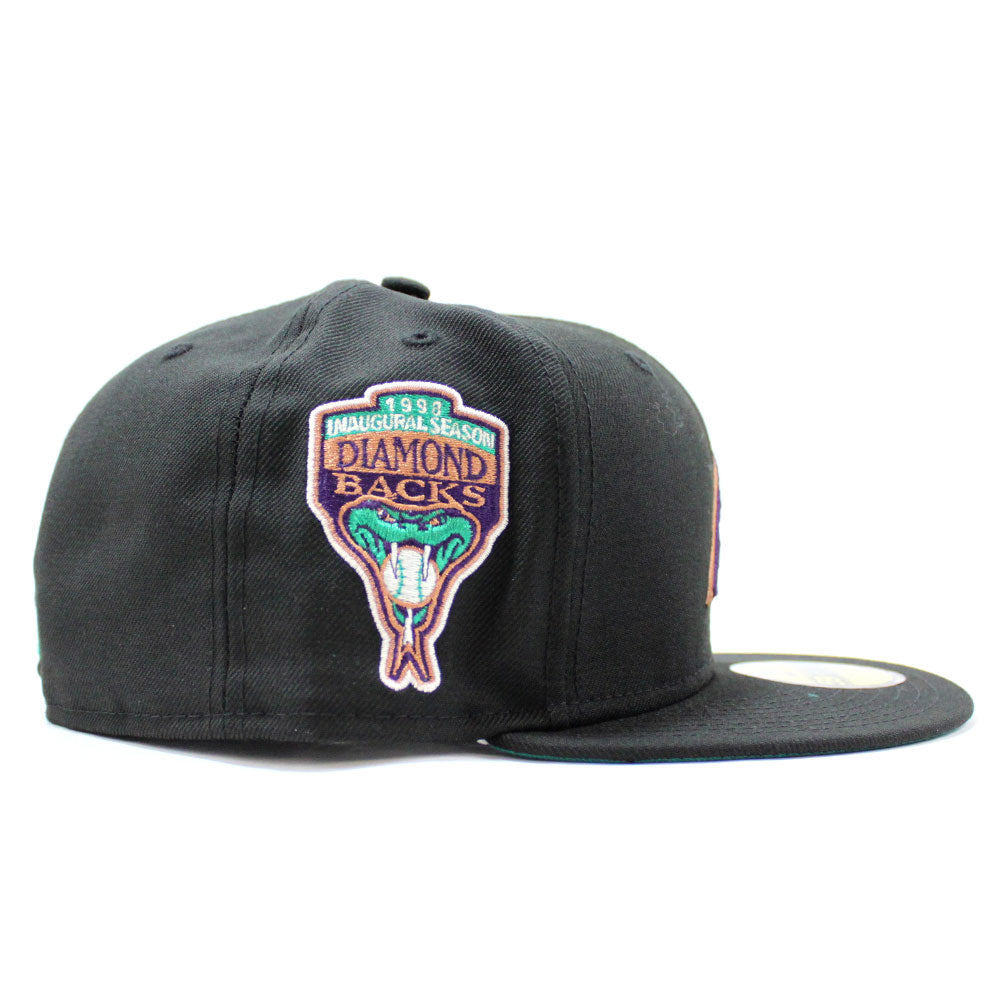 Arizona Diamondbacks 1998 Inaugural Season New Era 59Fifty Fitted Hat in Black & Teal Green Under Brim.