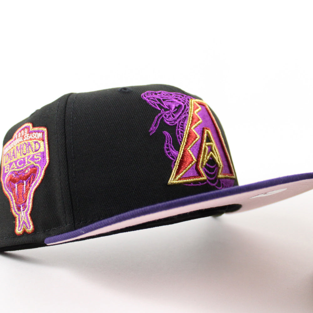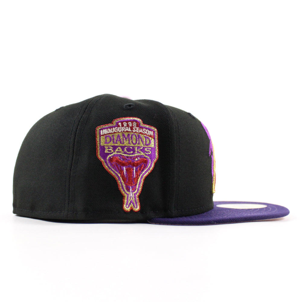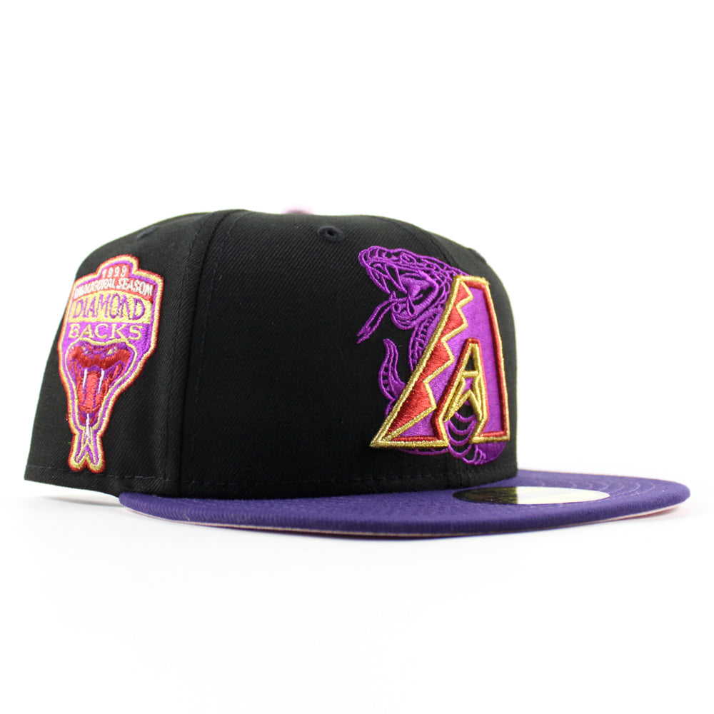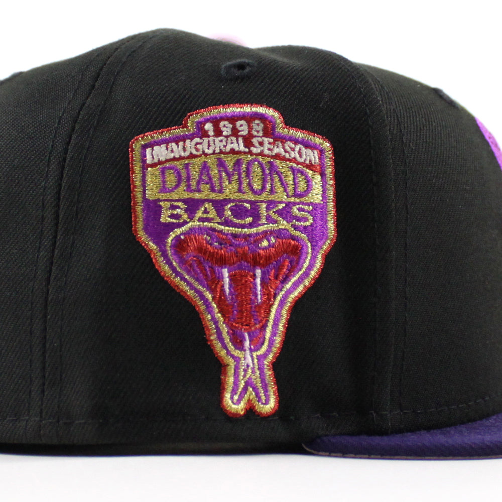 Arizona Diamondbacks 1998 Inaugural Season New Era 59Fifty Fitted Hat in Black, Purple and Pink Under Brim.