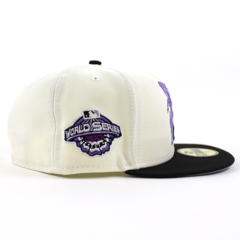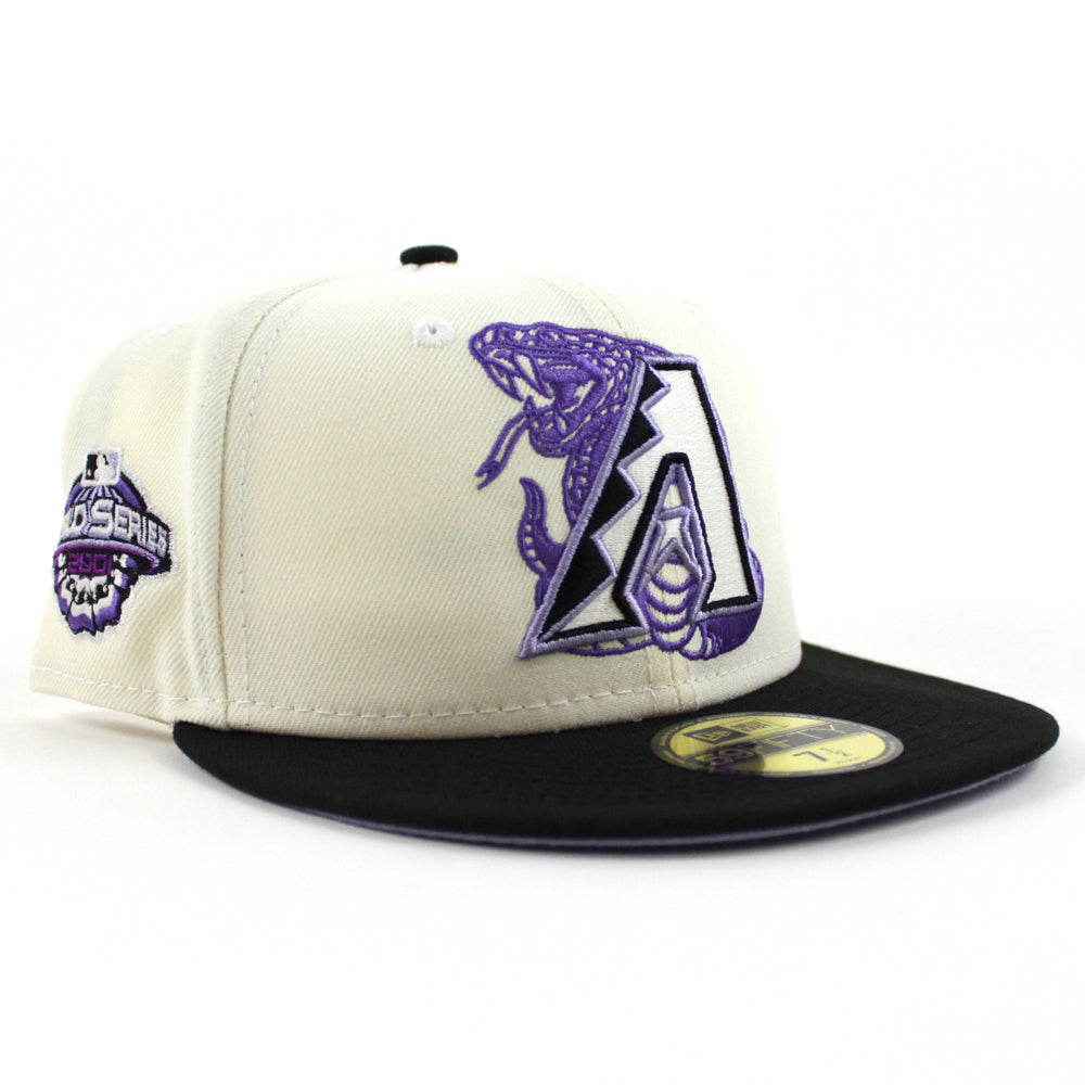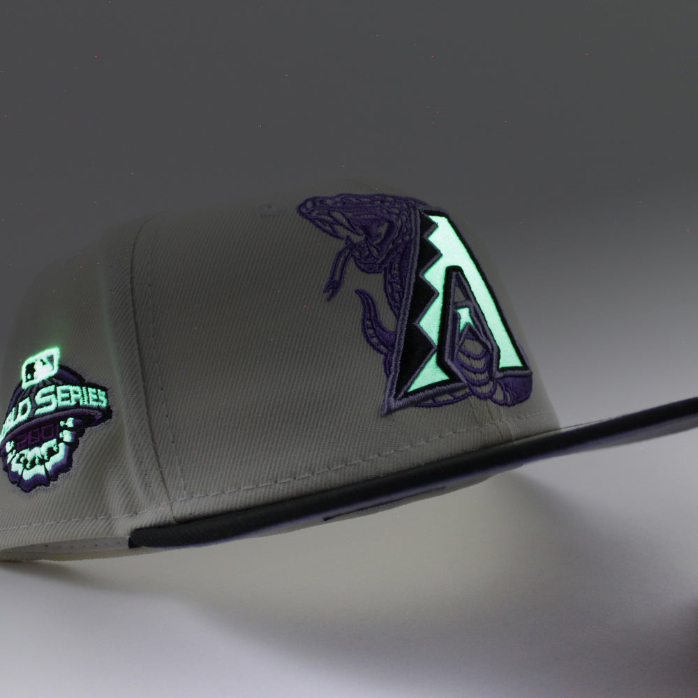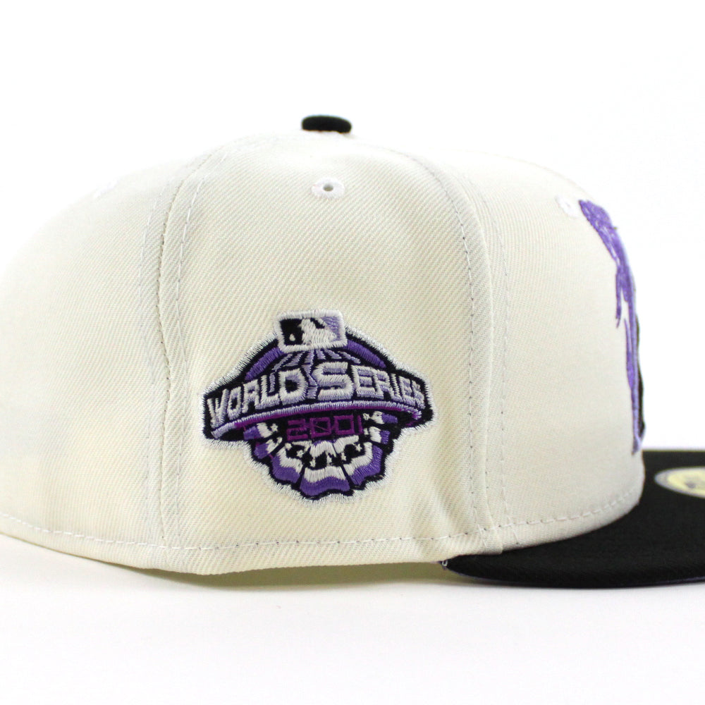 Arizona Diamondbacks 2001 World Series New Era 59Fifty Fitted Hat (GITD Chrome White Black Lavender Under Brim)