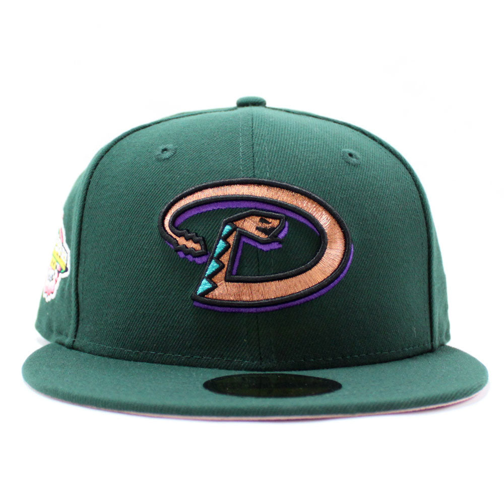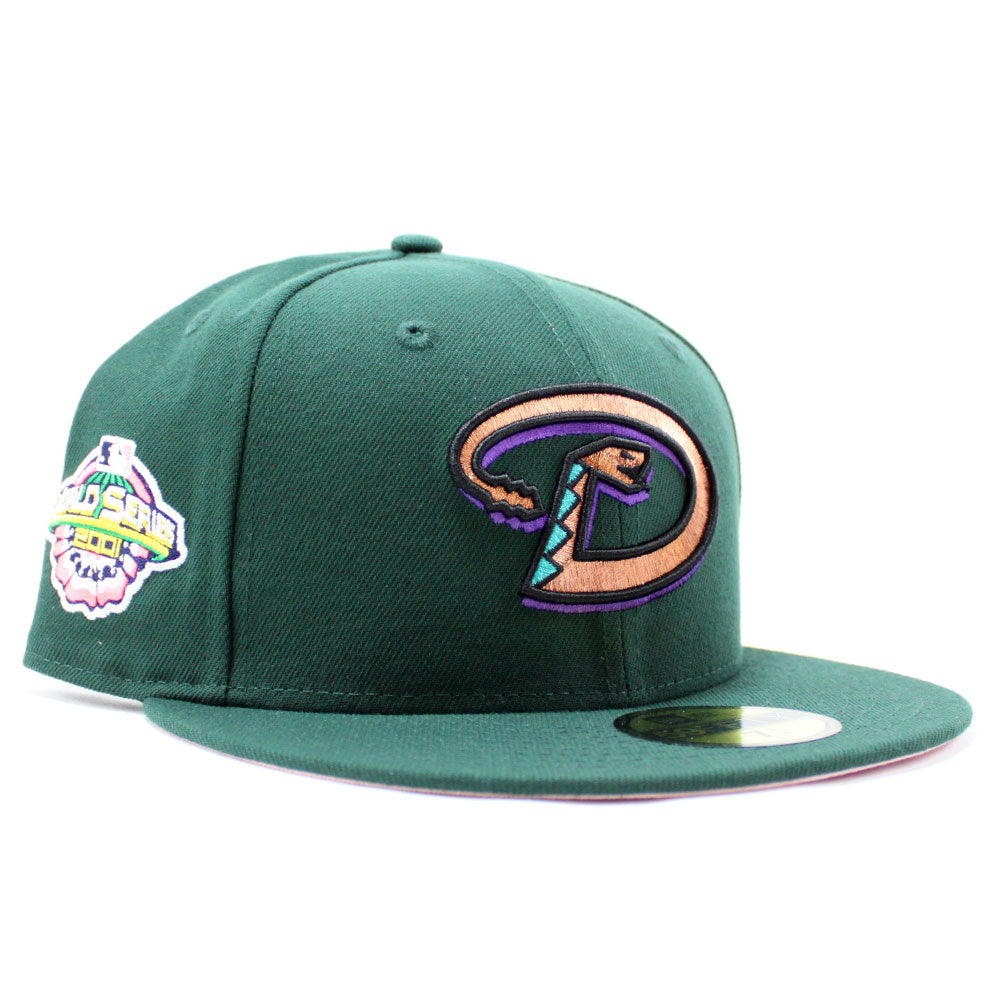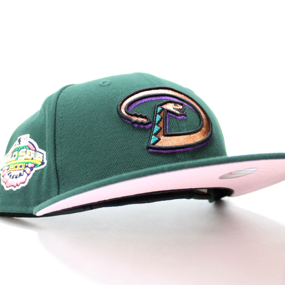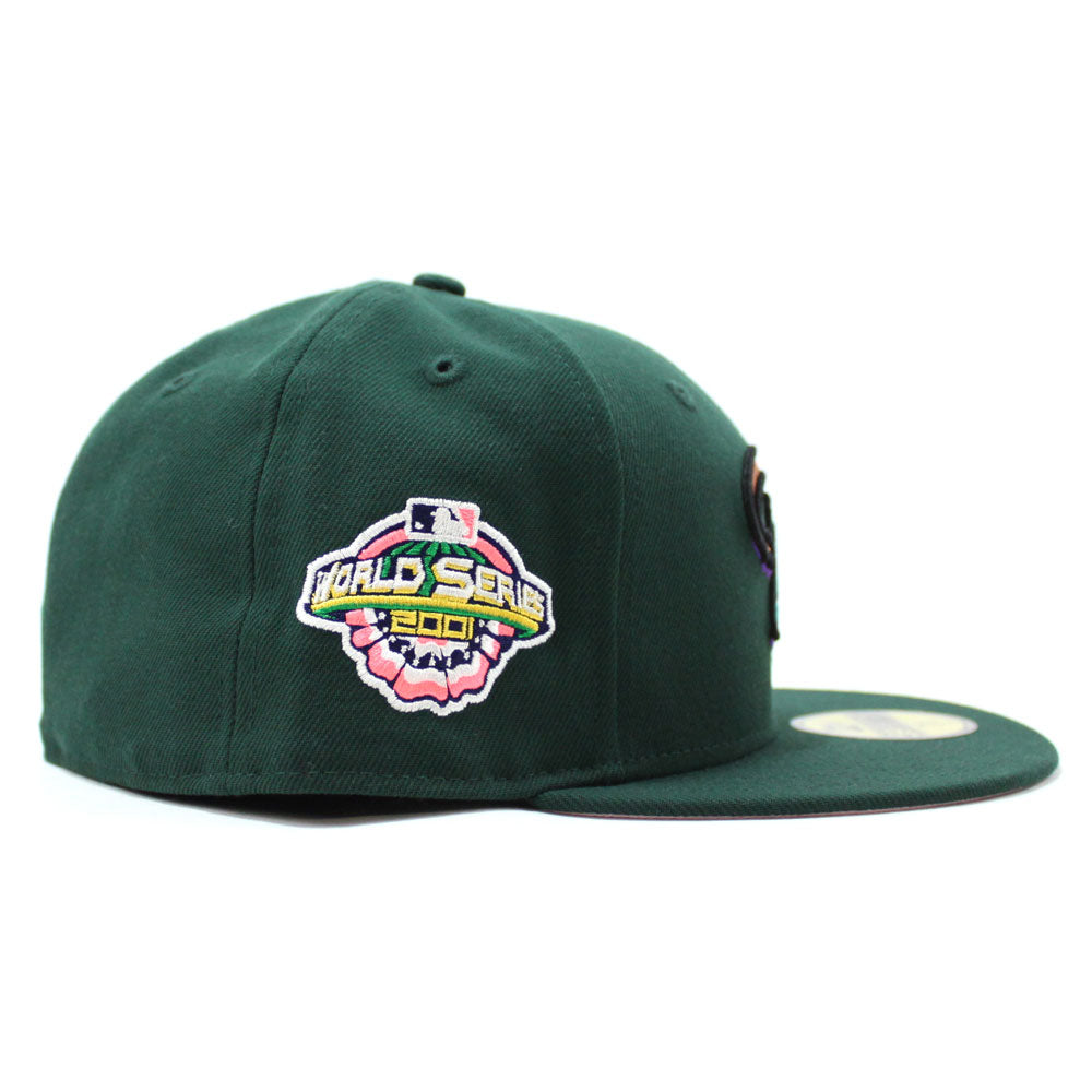Arizona Diamondbacks 2001 World Series New Era 59Fifty Fitted Hat in Dark Green & Pink Under Brim.