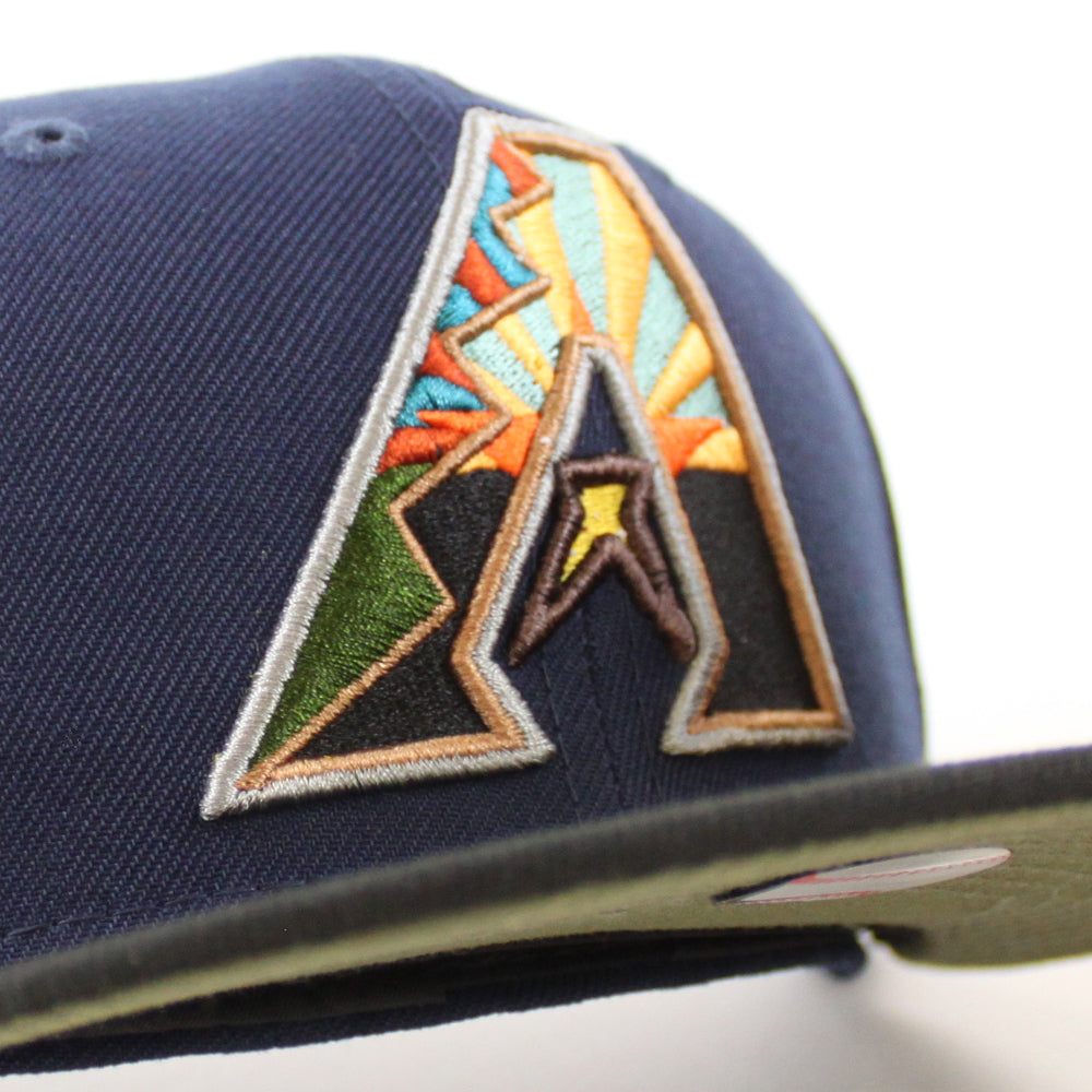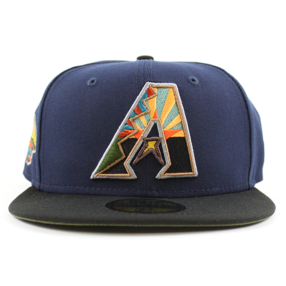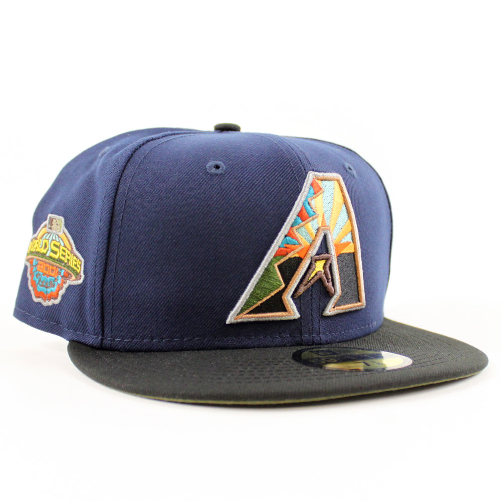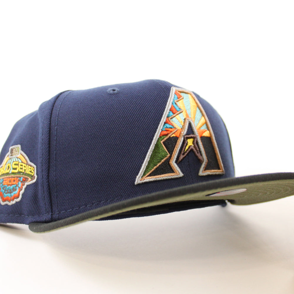 Arizona Diamondbacks 2001 World Series New Era 59Fifty Fitted Hat in OceanSide Blue, Black and New Olive Under Brim.