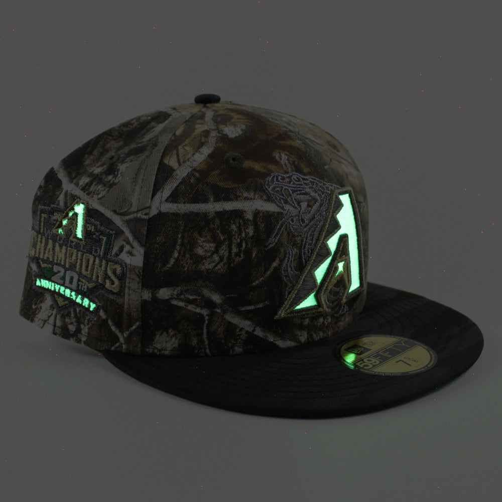 Arizona Diamondbacks 20th Anniversary New Era 59Fifty Fitted Hat (Glow in the Dark Real Tree Camo Tonal Black Green Under Brim)
