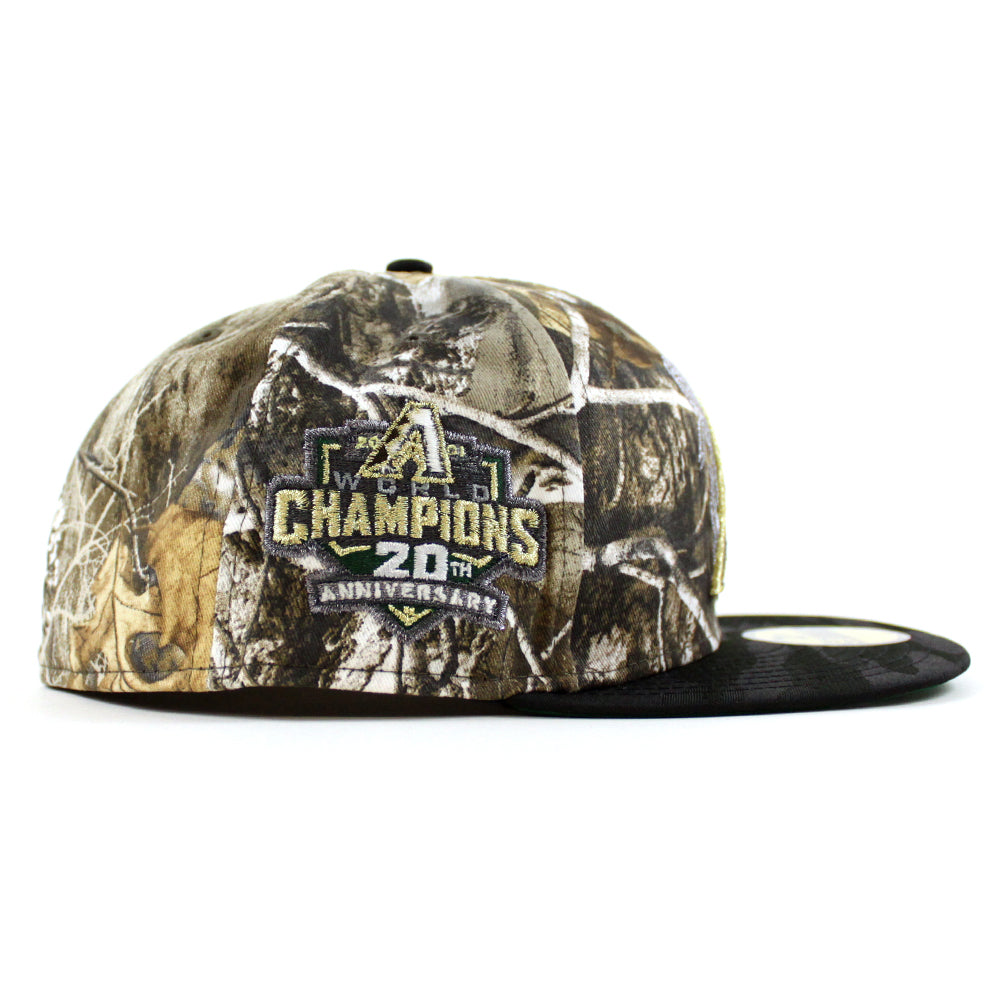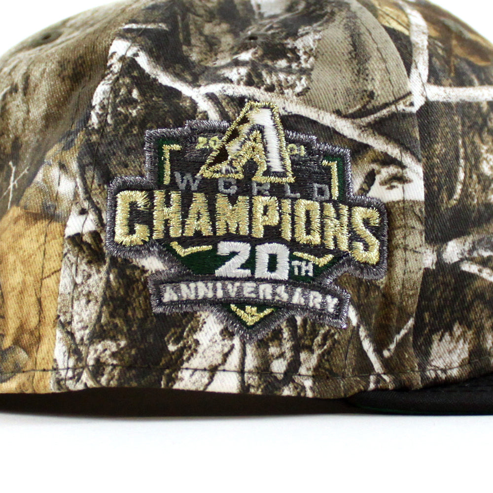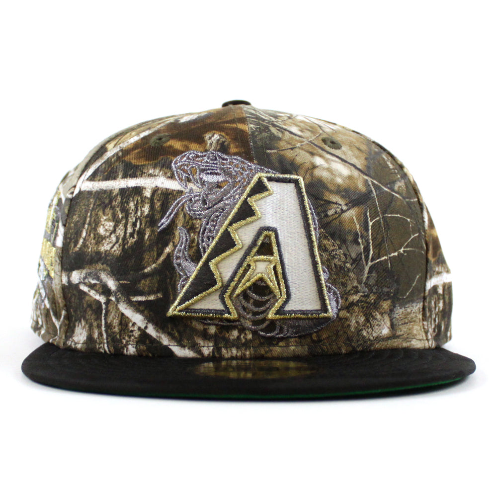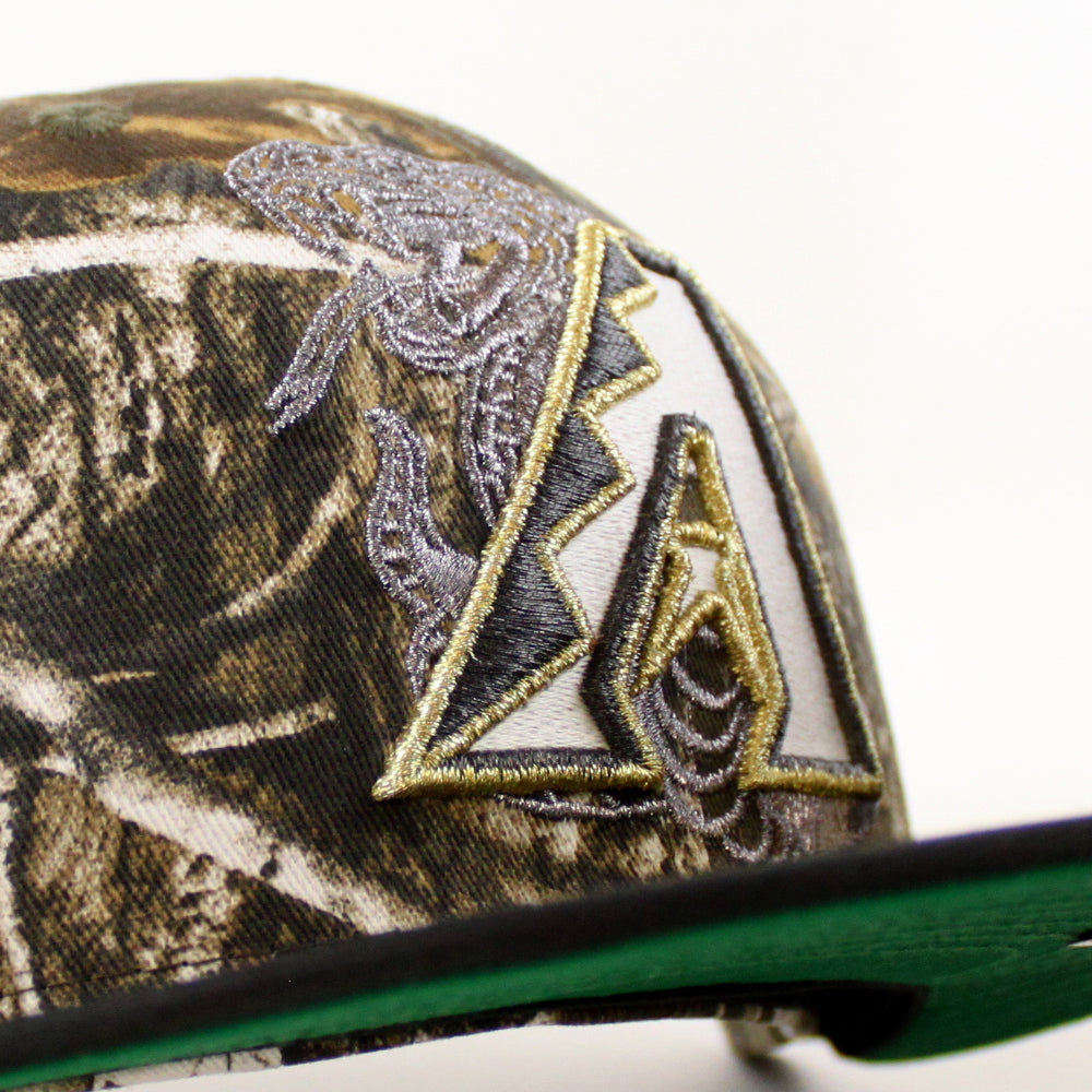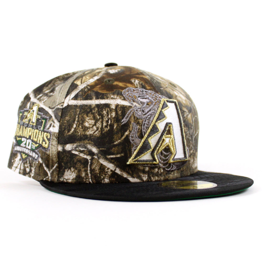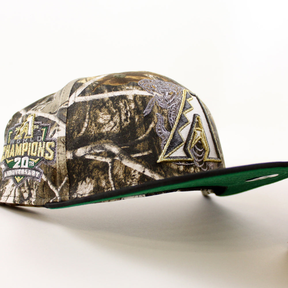 Arizona Diamondbacks 20th Anniversary New Era 59Fifty Fitted Hat in Real Tree Camo, Tonal Black and Green Under Brim.