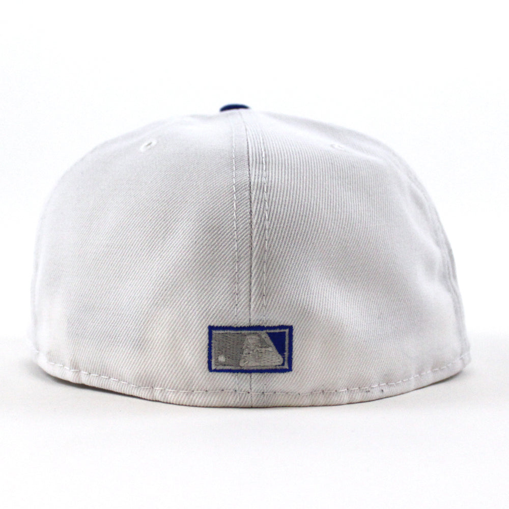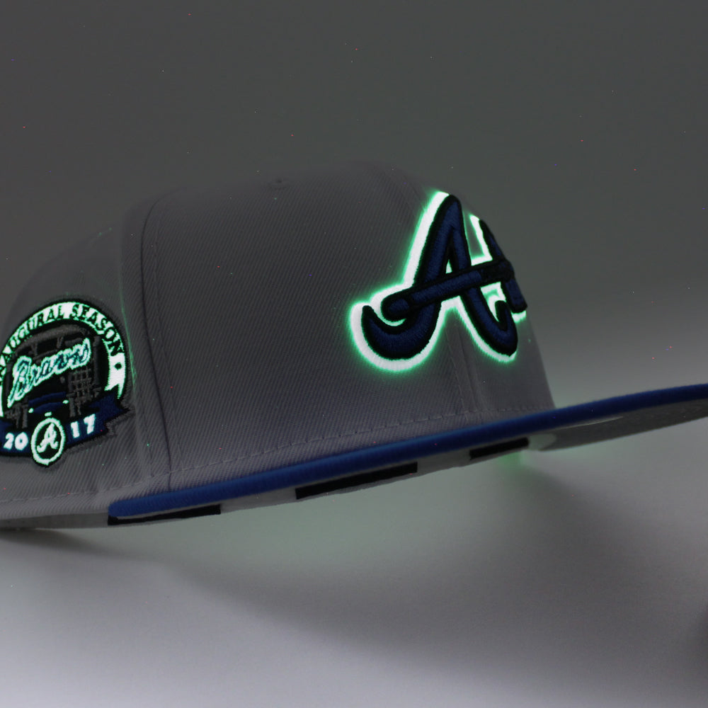 Atlanta Braves 17th Inaugural Season New Era 59Fifty Fitted Hat in White with Blue Visor and a Gray UnderBrim.