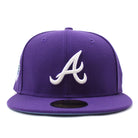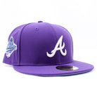 Atlanta Braves 1995 World Series New Era 59Fifty Fitted Hat in Light Purple with a Sky Blue Under Brim.