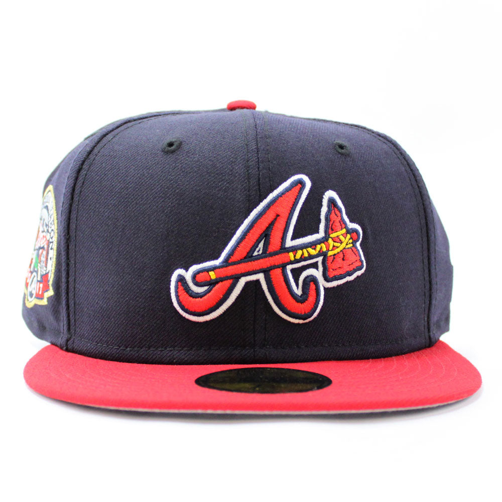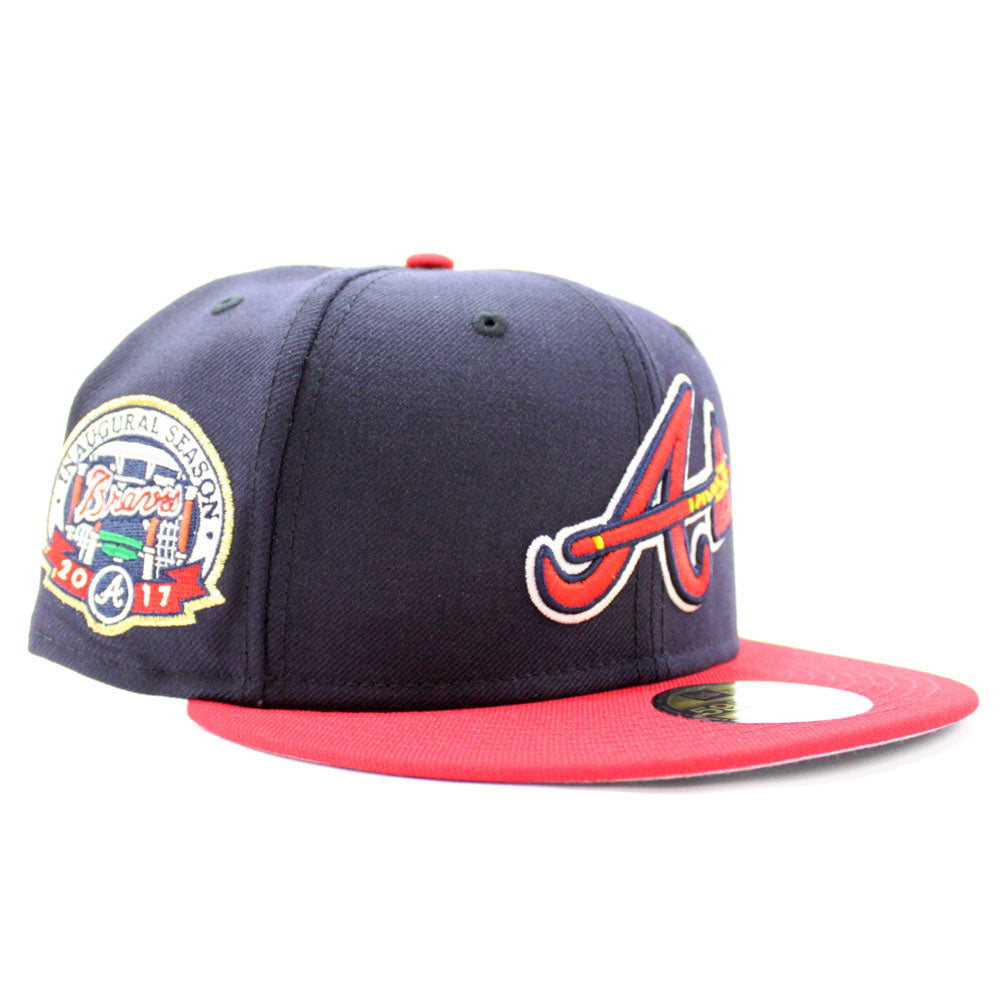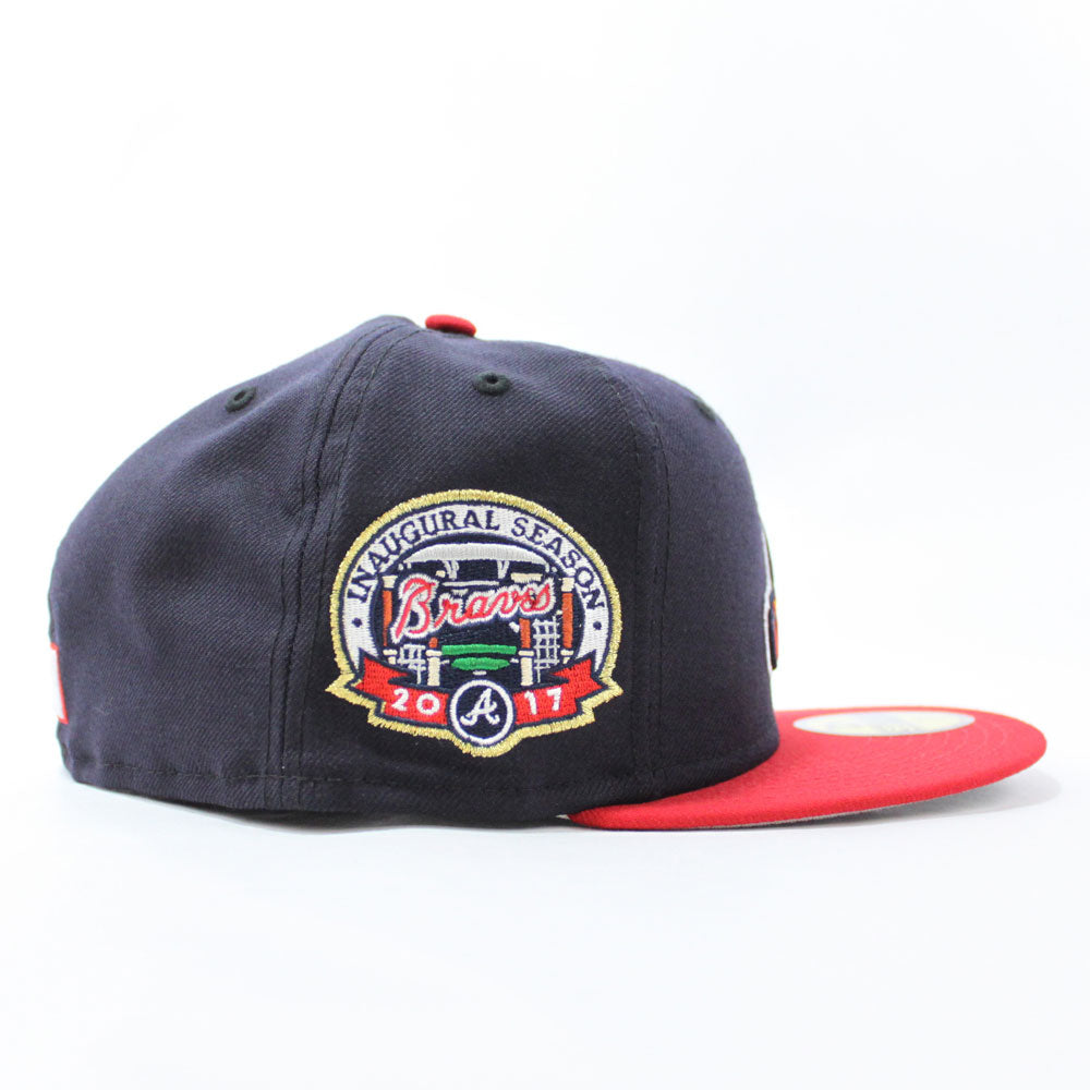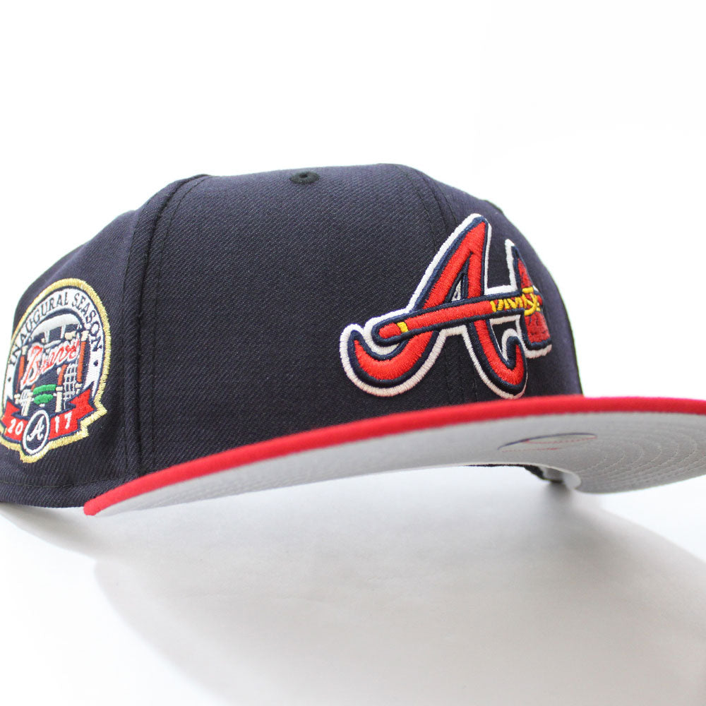 Atlanta Braves 2017 Inaugural Season New Era 59Fifty Fitted Hat in Navy and Red, with a Gray Under Brim.