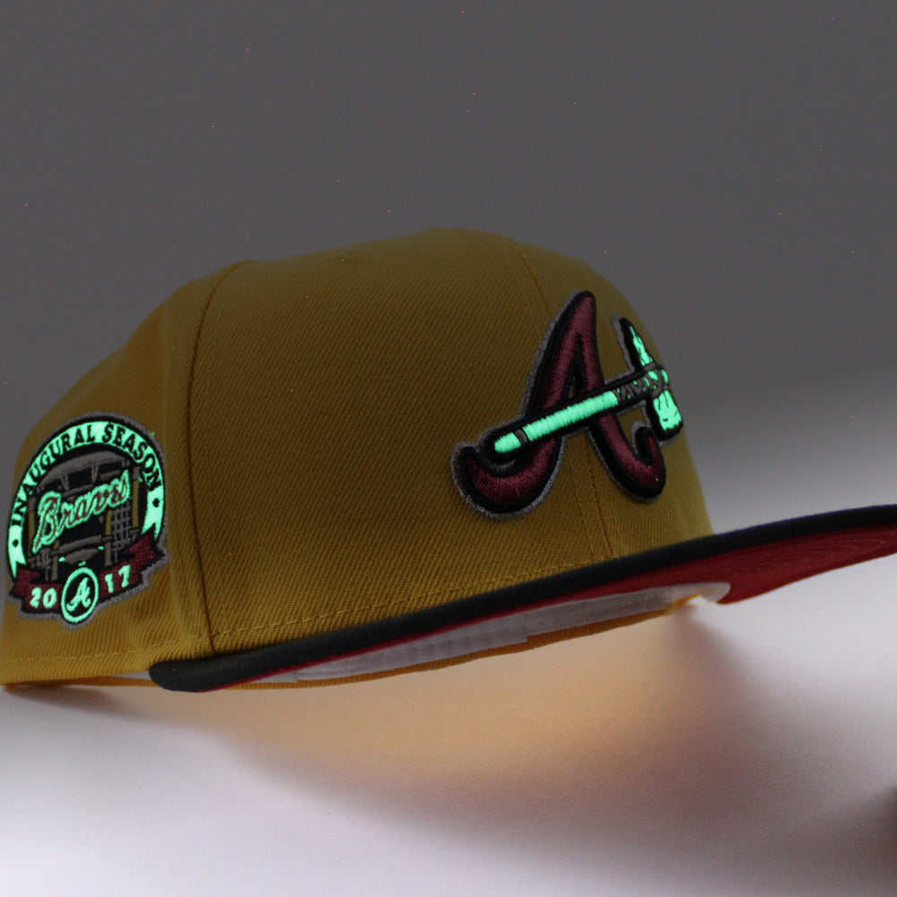 Atlanta Braves Inaugural Season 2017 New Era 59Fifty Fitted Hat (GITD Gold Black Red Under Brim)