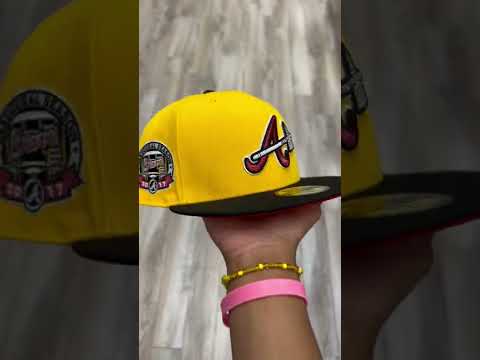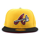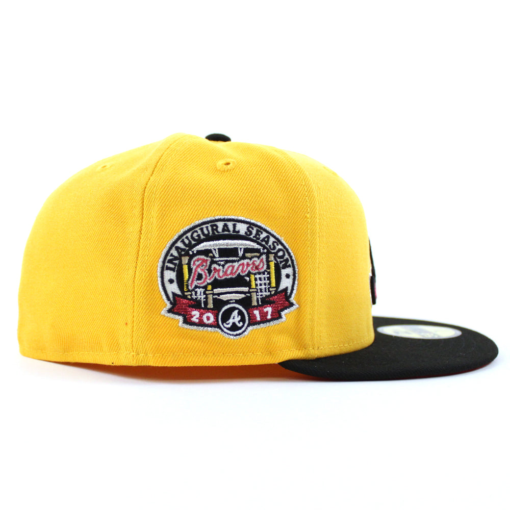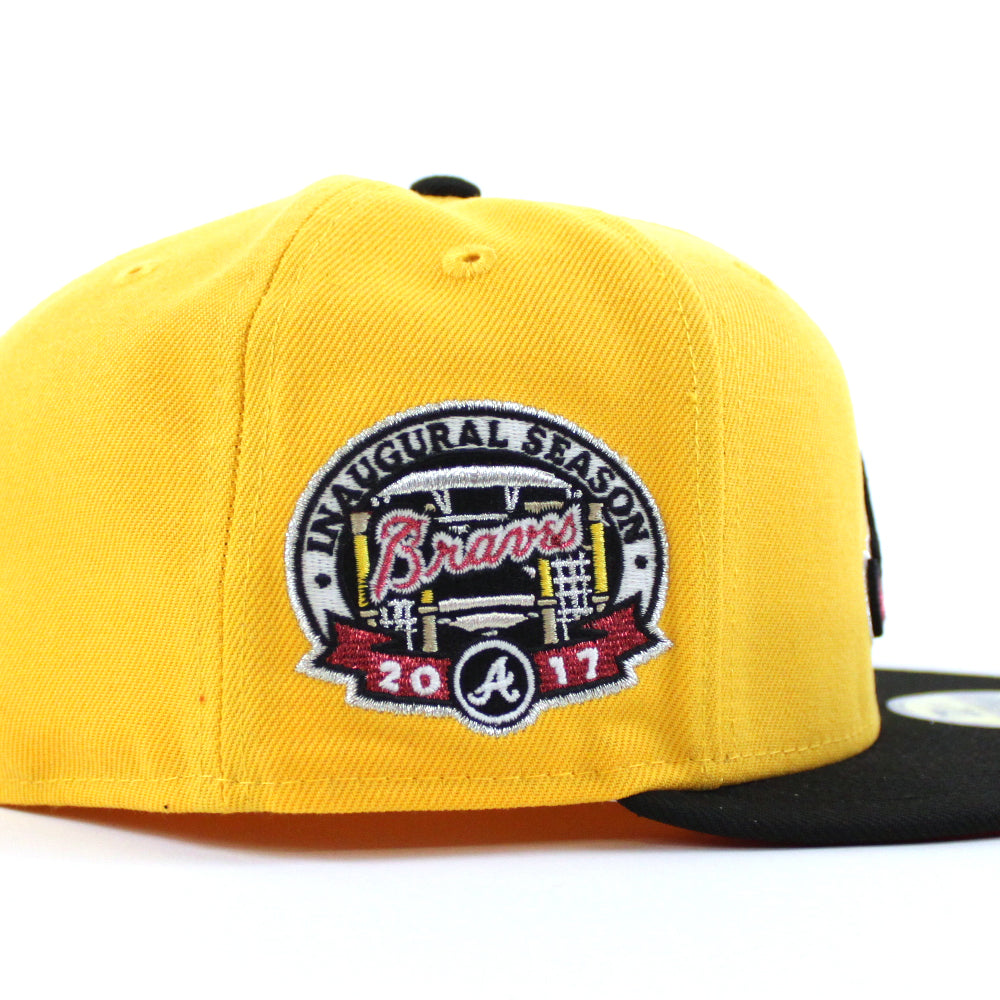 Atlanta Braves Inaugural Season 2017 New Era 59Fifty Fitted Hat in Gold, Black with a Red Under Brim.