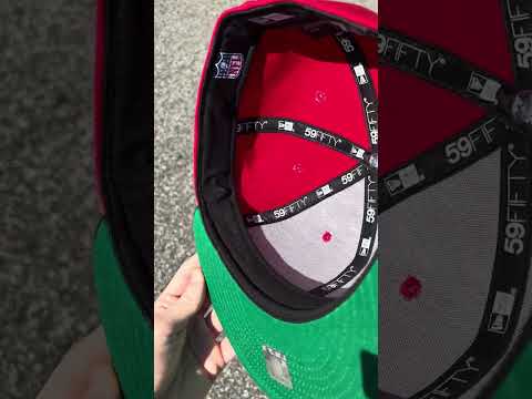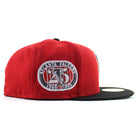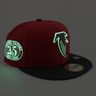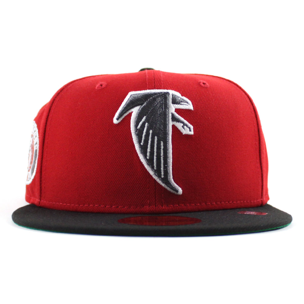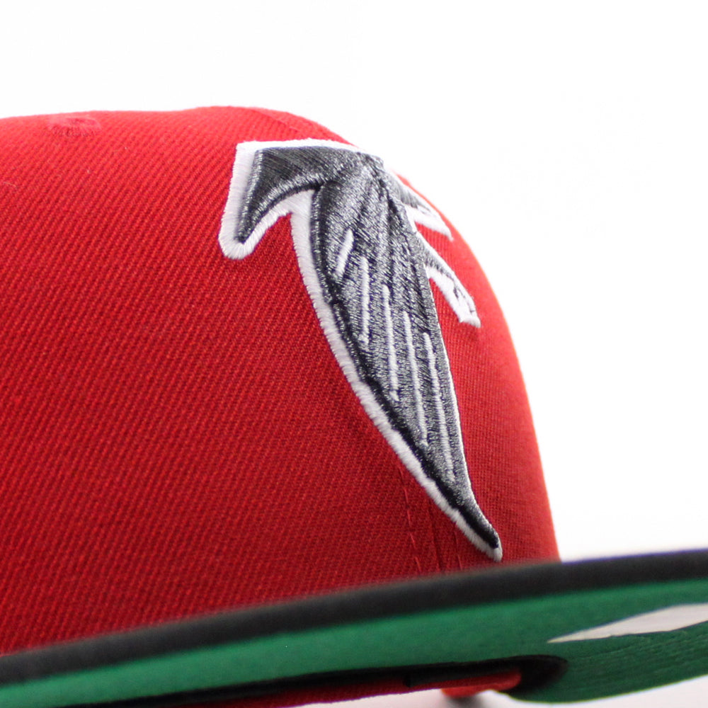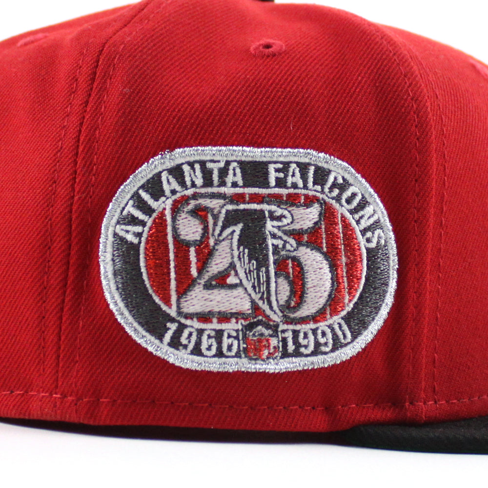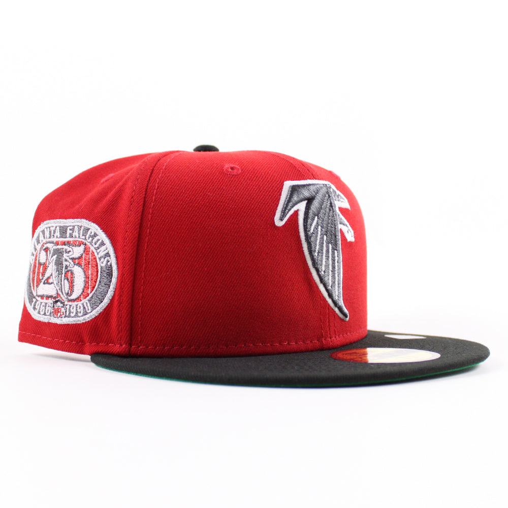 Atlanta Falcons 25th New Era 59Fifty Fitted Hat in Red & Black with Green Under Brim.