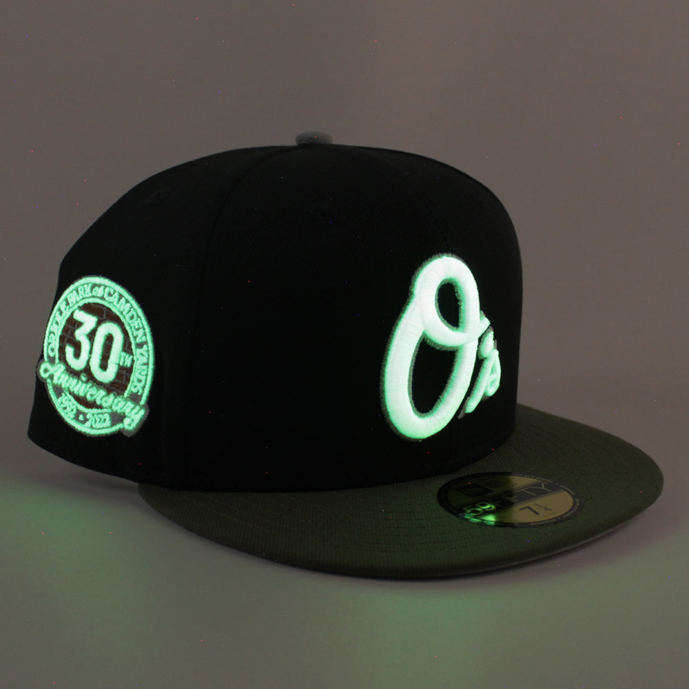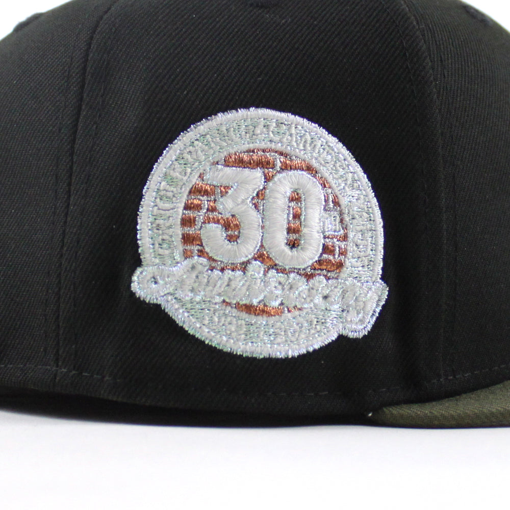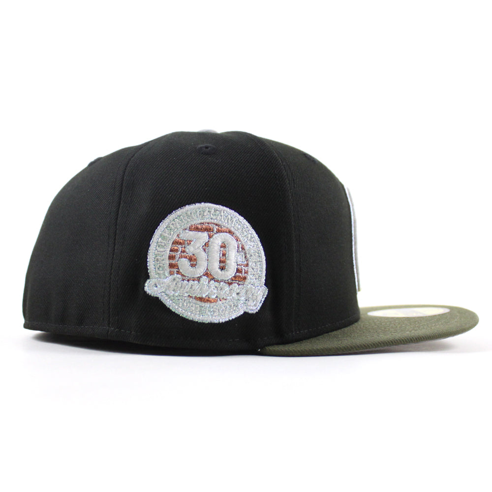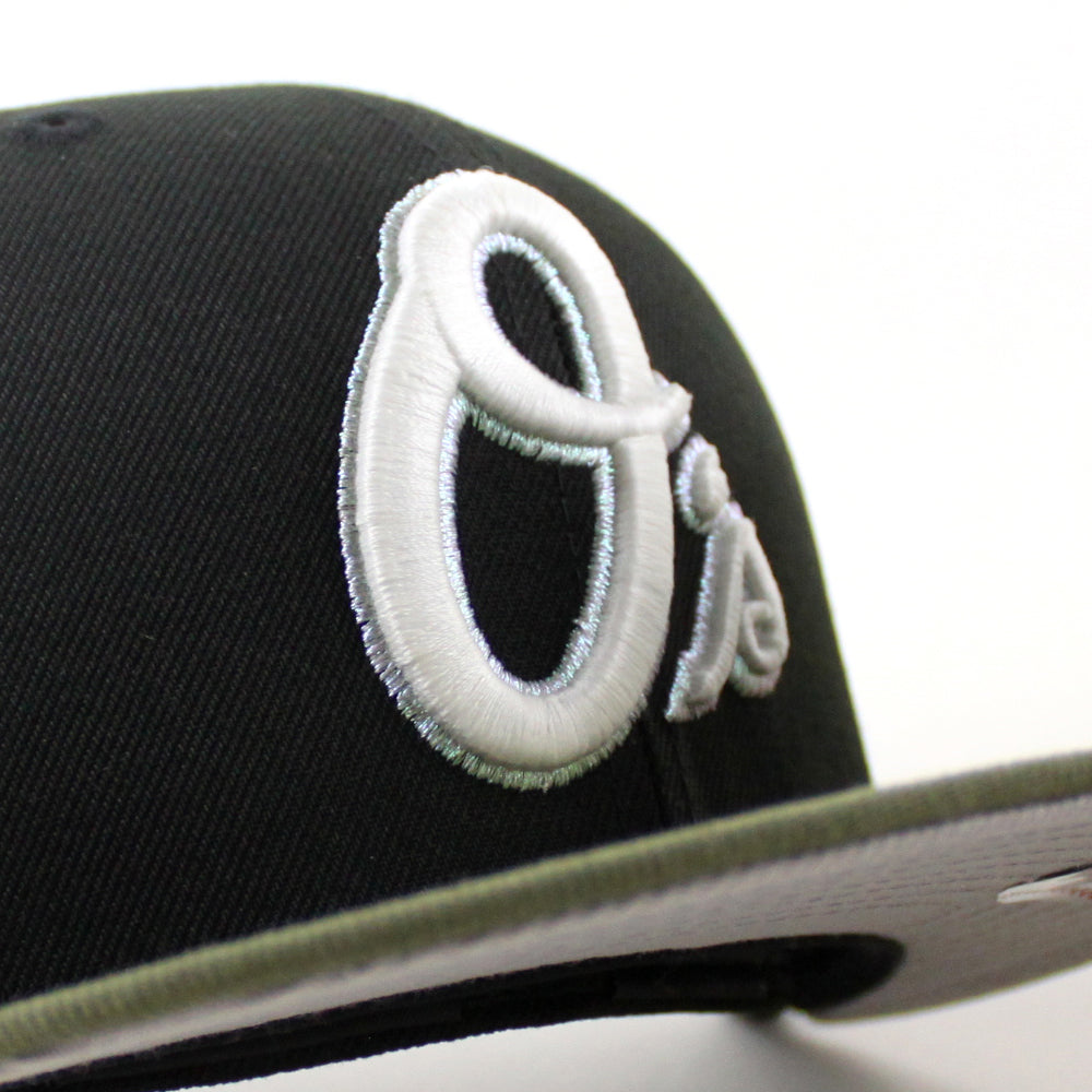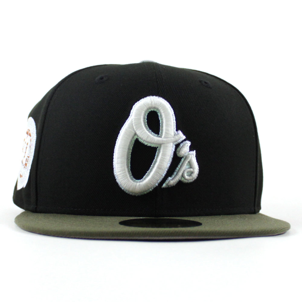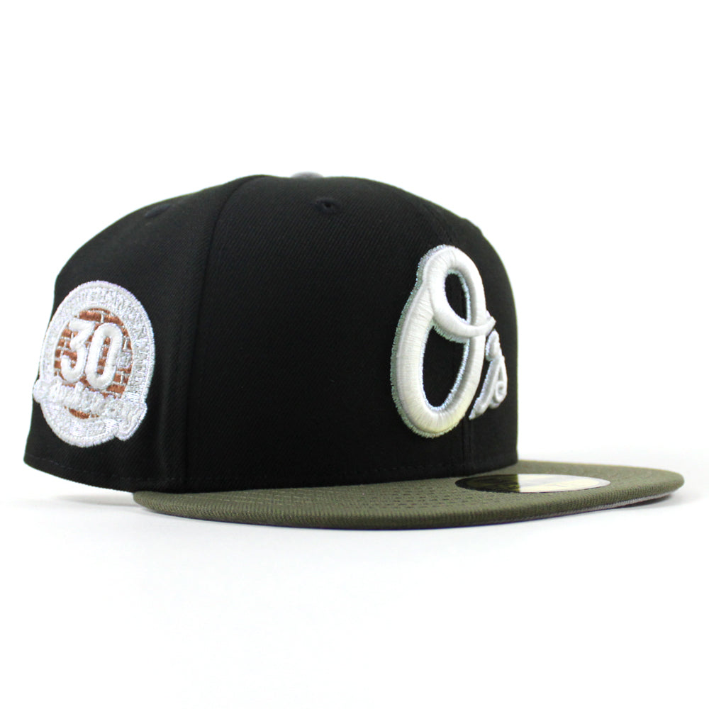 Baltimore Orioles 30th Anniversary 59Fifty New Era Fitted Cap in Black, Olive Green and Gray Under Brim.