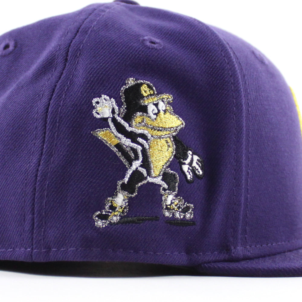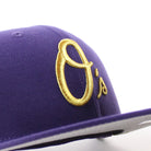 Baltimore Orioles Mascot Patch 59Fifty New Era Fitted Cap in Purple and Gray Under Brim.