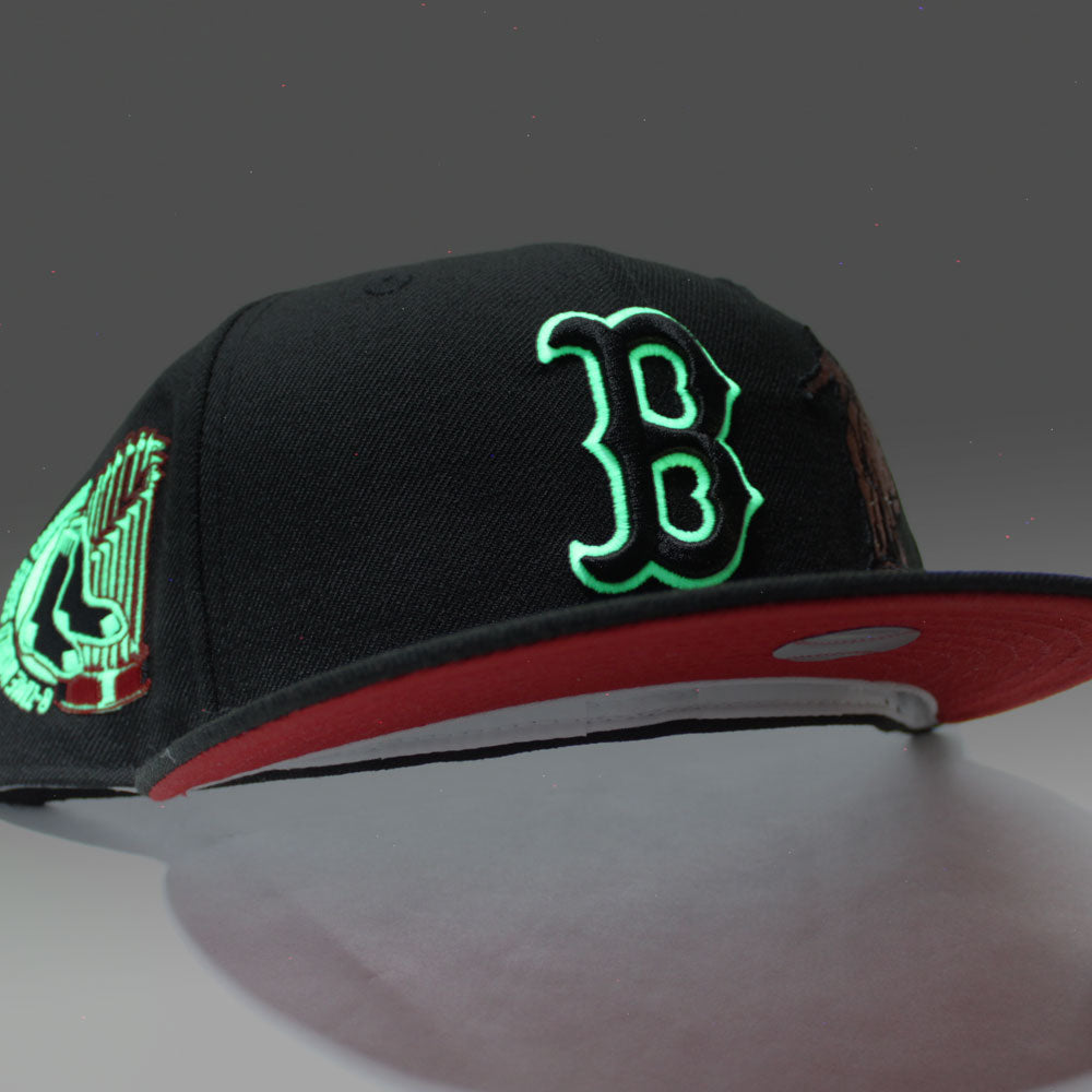 Boston Red Sox 8X Champions New Era 59Fifty Fitted Hat (Glow in the Dark Black Red Under Brim)