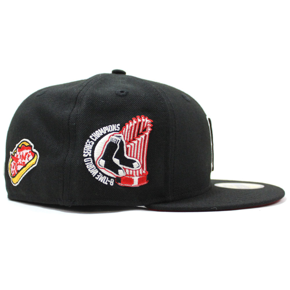 Boston Red Sox 8X World Series Champions 59Fifty New Era Fitted Hat is in Black & Red Under Brim.
