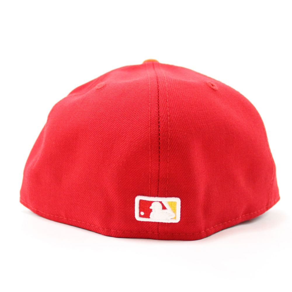 Seattle Mariners New Era 59Fifty Fitted Hat in Red, Orange & Yellow.