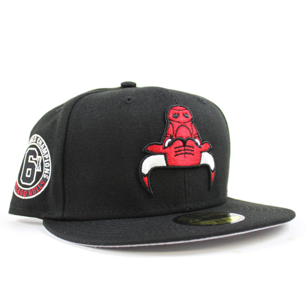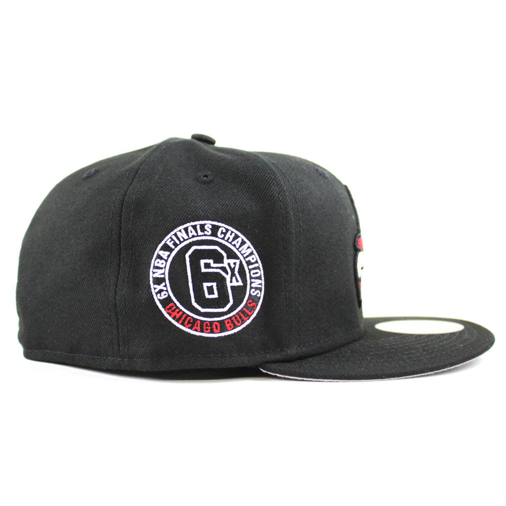 Chicago Bulls UPSIDE DOWN NBA CHAMP New Era 59fifty Fitted Hat (Black Gray Under Brim)