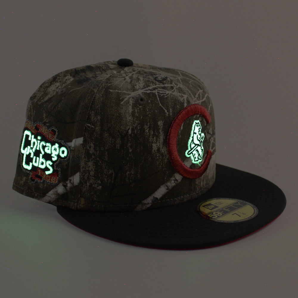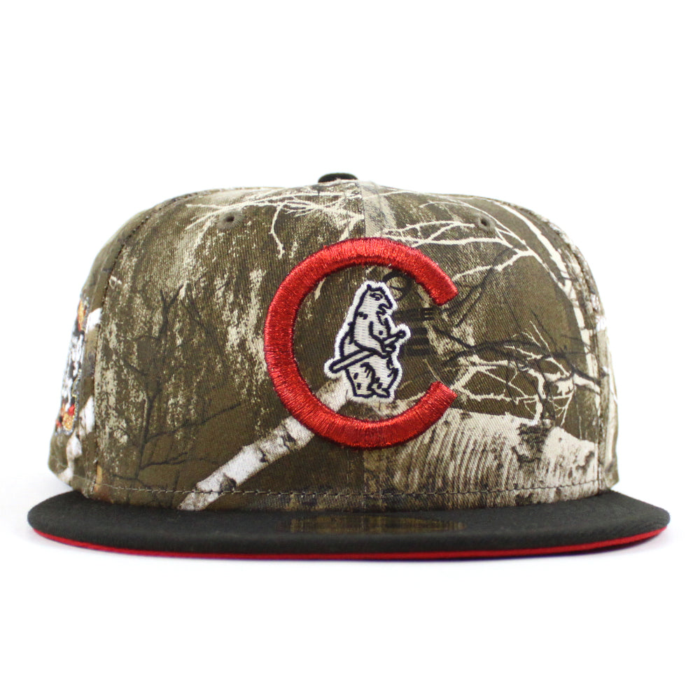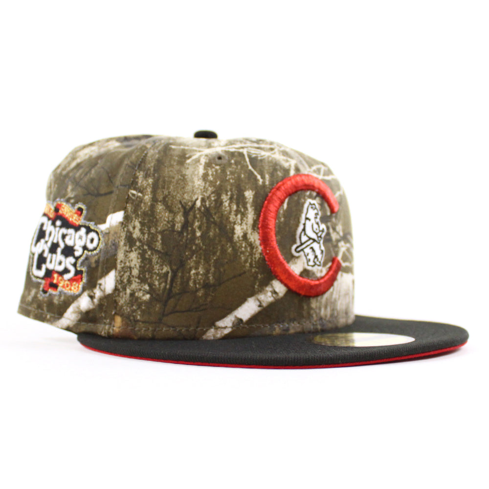 Chicago Cubs 1908 World 59Fifty New Era Fitted Hat in RealTree Camo, Black and Scarlet Red Under Brim.