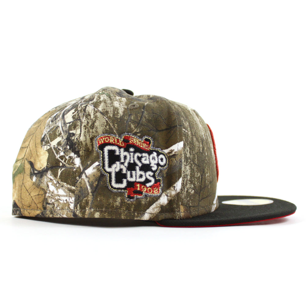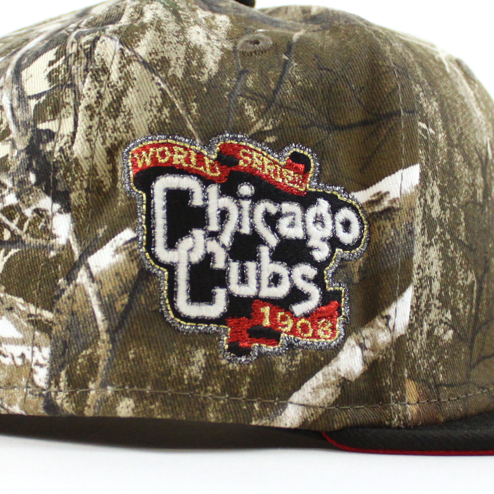 Chicago Cubs 1908 World Series New Era 59Fifty Fitted Hat (RealTree Camo Black Scarlet Red Under Brim)