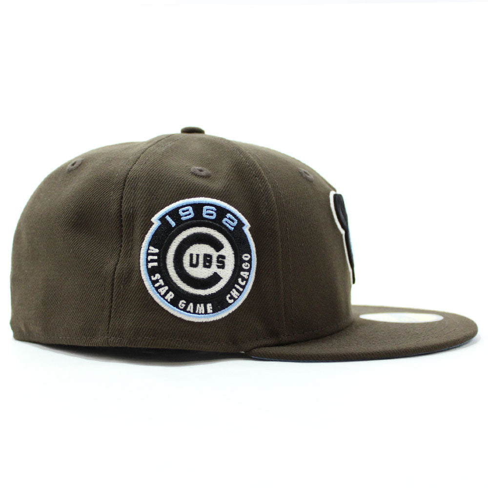 Chicago Cubs 1962 All Star Game 59Fifty New Era Fitted Hat in Walnut & Sky Blue Under Brim.