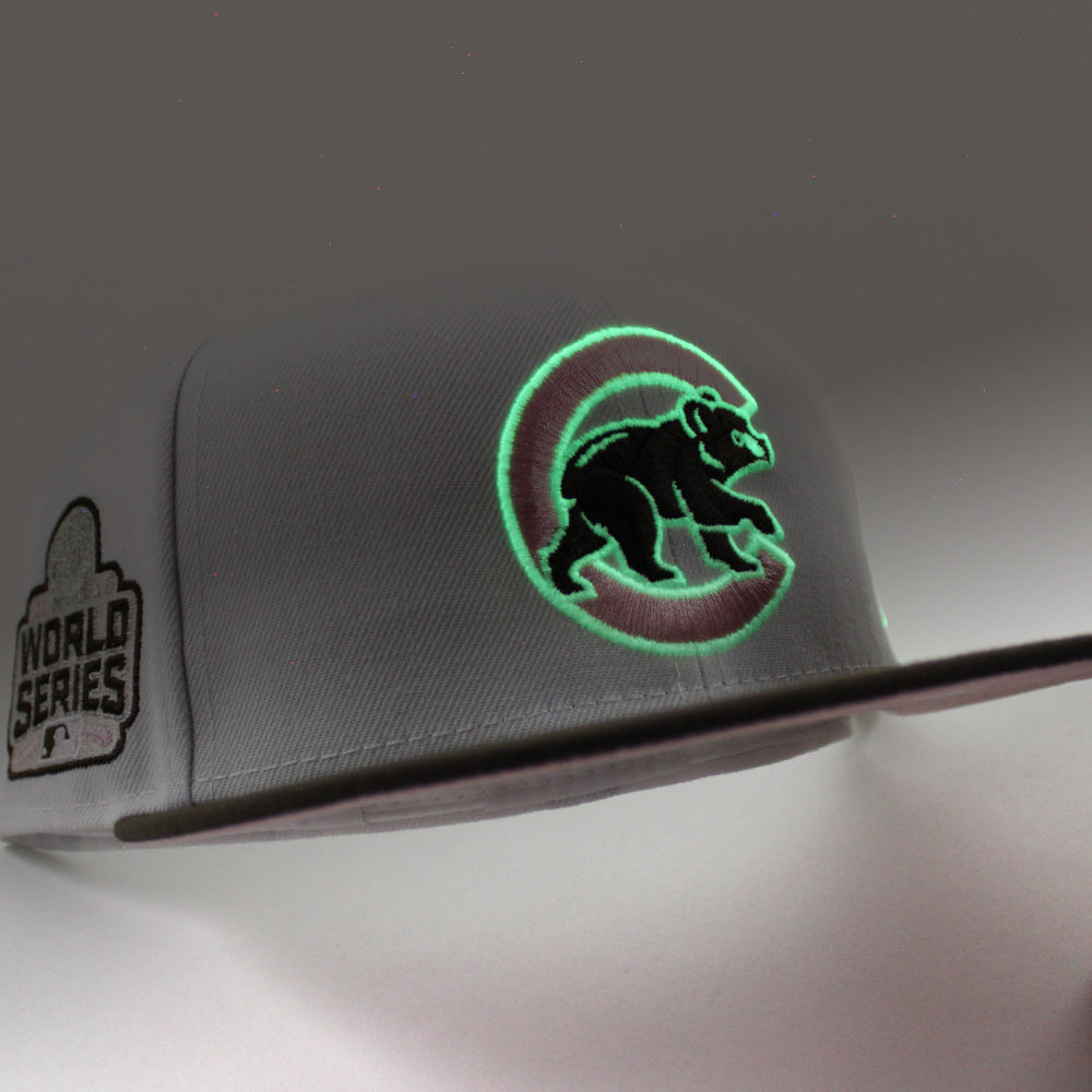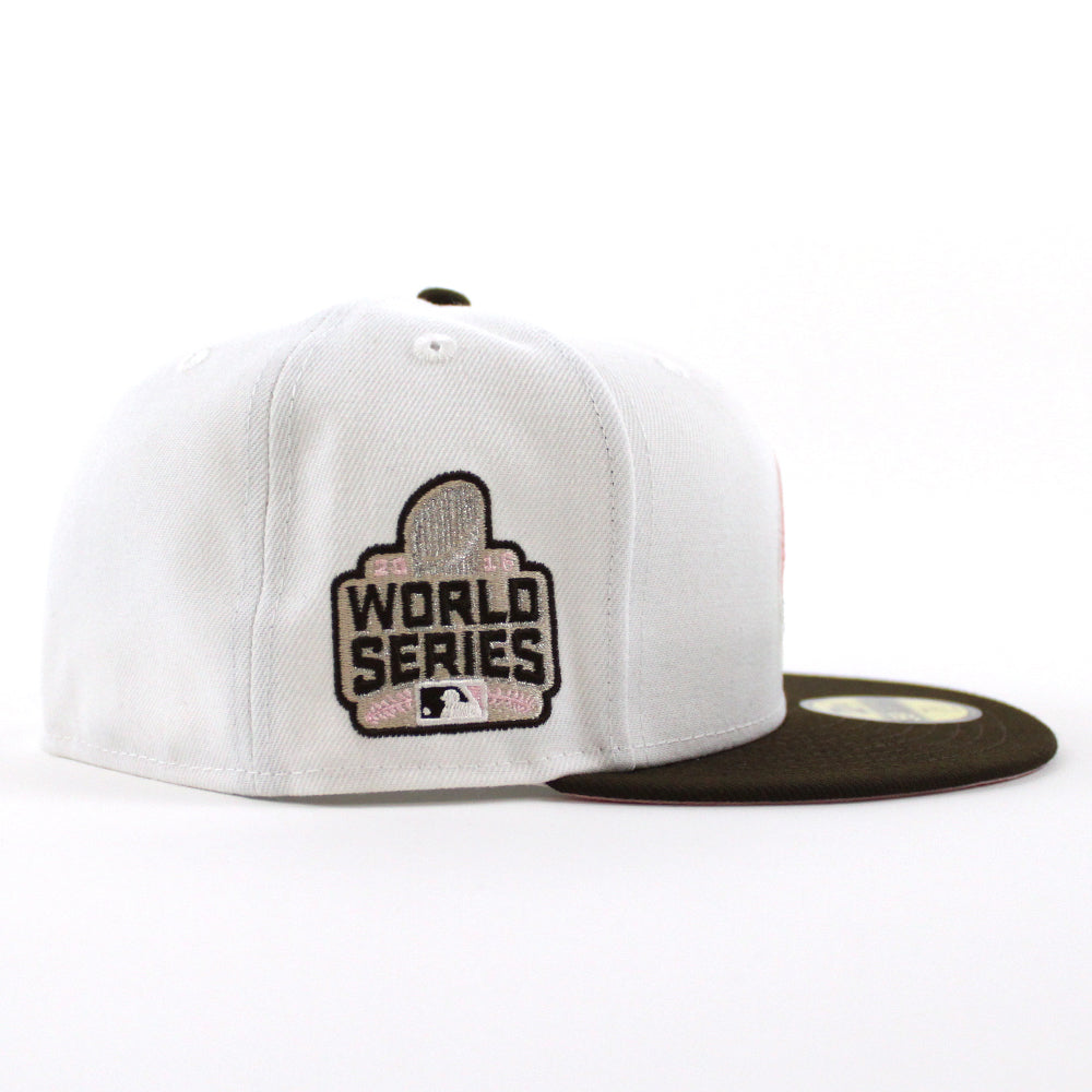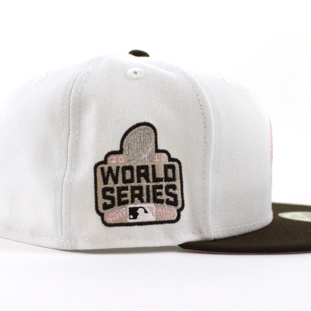 Chicago Cubs 2016 World Series New Era Fitted 59Fifty Hat (GITD White Brown Pink Under Brim)