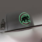 Simply Expose Logo to Sunlight (or bright light) for at least one full minute to activate the green phosphorescent glow. The longer it is exposed, the longer and brighter the afterglow will be.