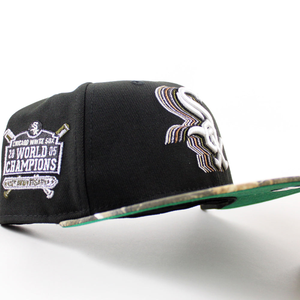 Chicago White Sox 10th Anniversary New Era Fitted 59Fifty Cap in Black, RealTree Camo and Green Under Brim.