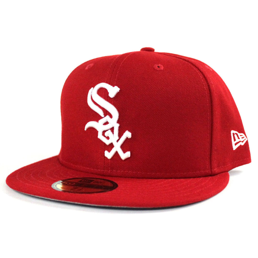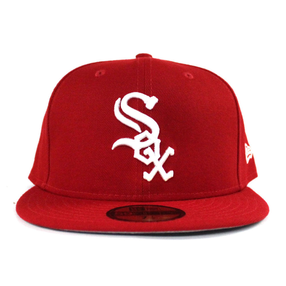 Chicago White Sox New Era 59Fifty Fitted Hat in Red and gray under brim.