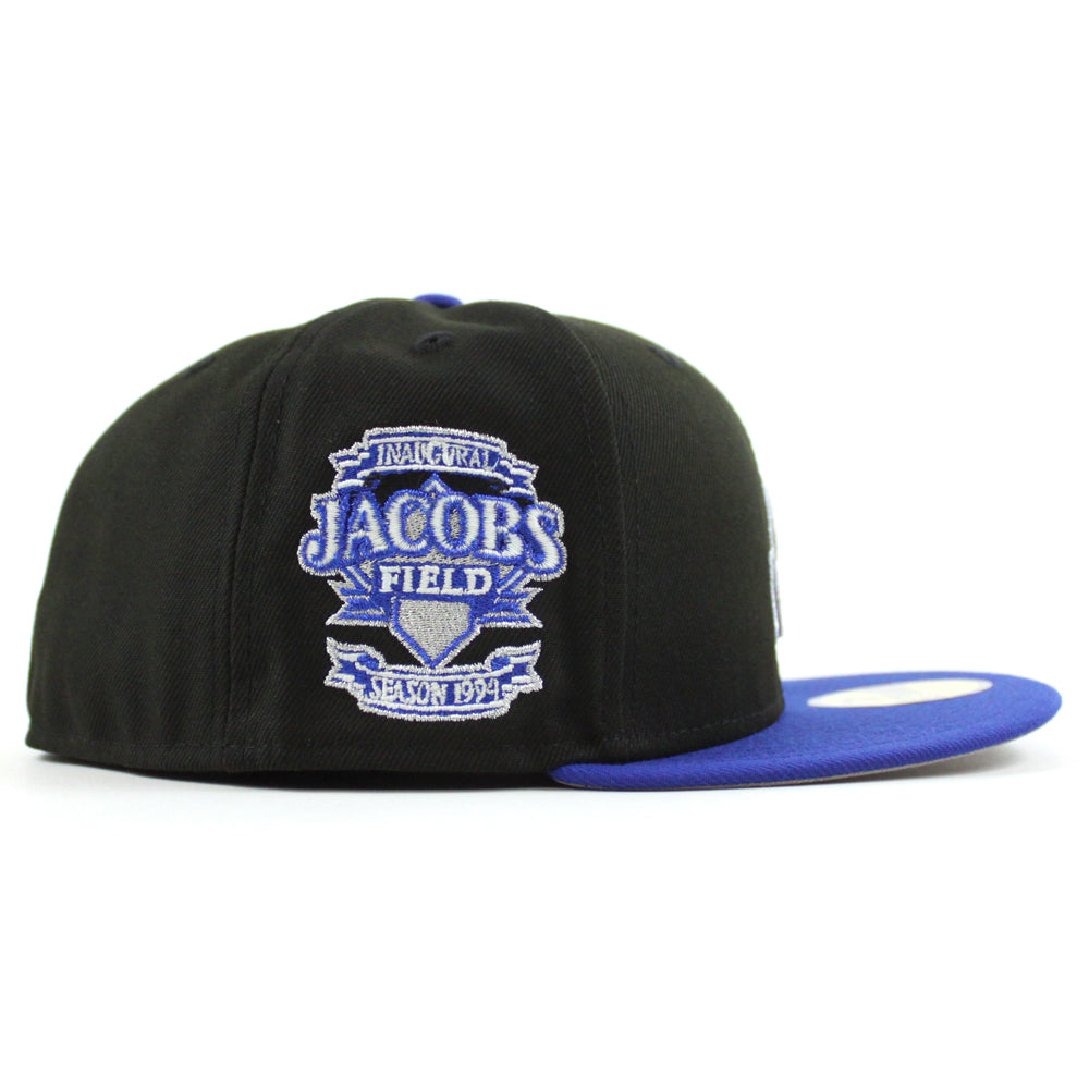 Cleveland Indians Jacobs Field New Era 59Fifty Fitted Hat (Irvington 2.0 Black Blue Gray Under Brim)