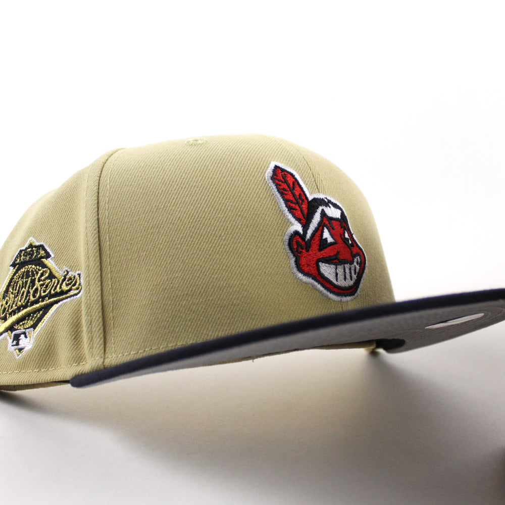 Cleveland Indians Wahoo Primary Logo 1948 Patch New Era 59Fifty Fitted Hat (Vegas Gold Navy Gray Under Brim)