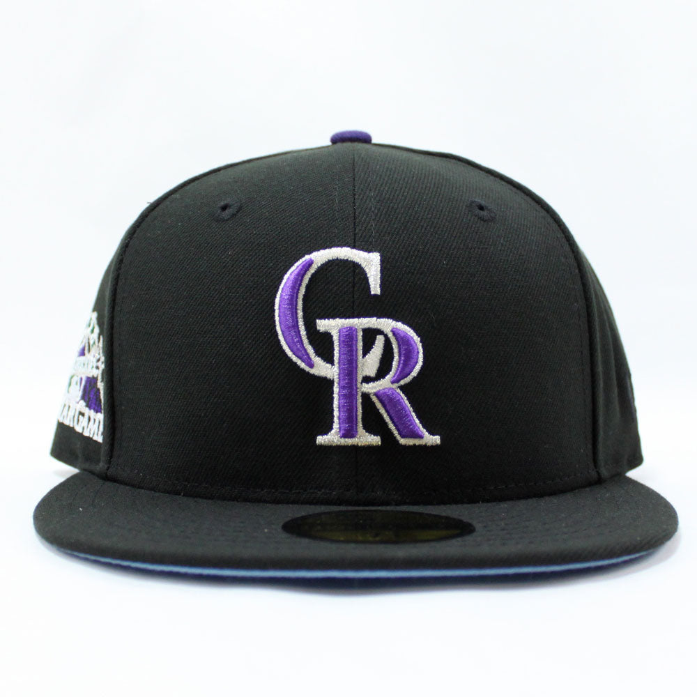 Colorado Rockies 1998 All Star Game New Era 59Fifty Fitted Hat in Black & Sky Blue Under Brim. For Air Jordan 1 HIGH OG COURT. (Icy Blue Bottoms)