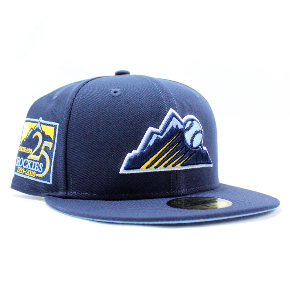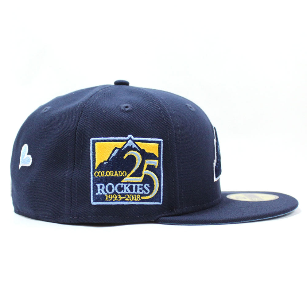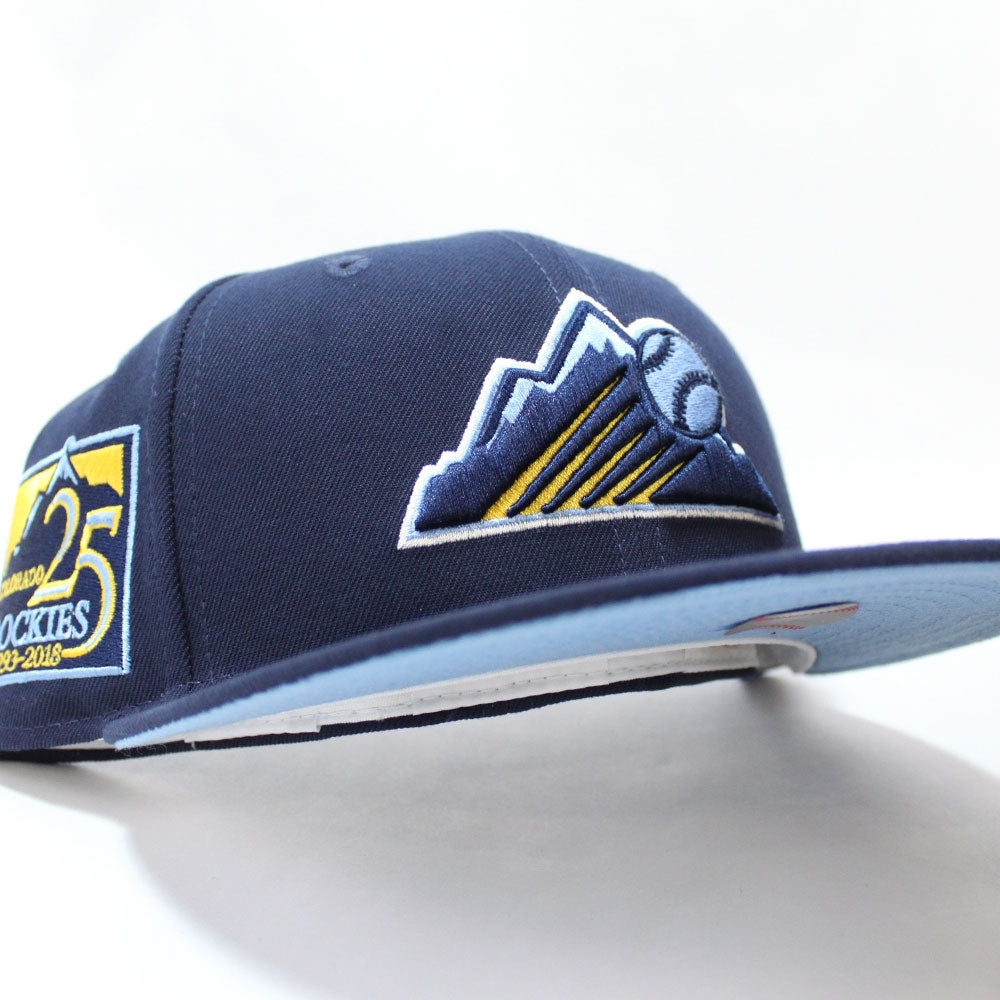 Colorado Rockies 25th Anniversary New Era 59Fifty Fitted Hat in Navy with Sky Blue Under Brim