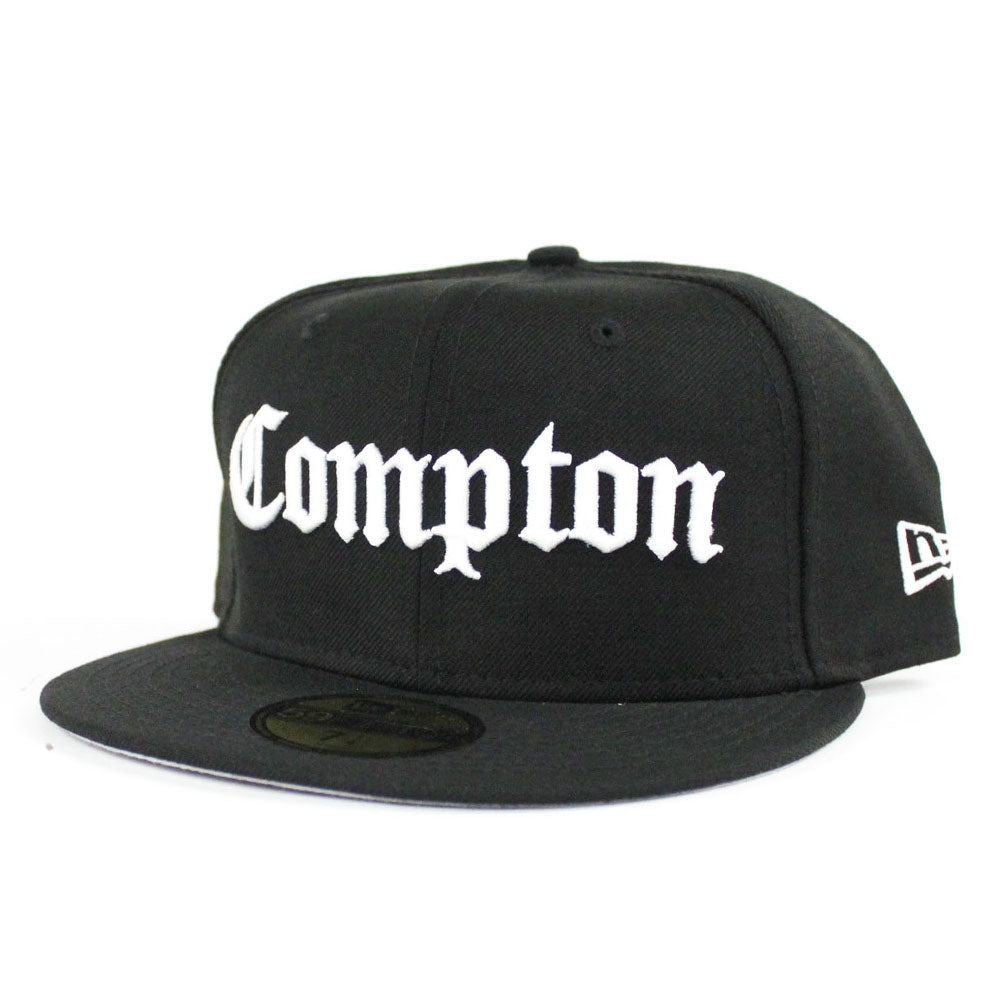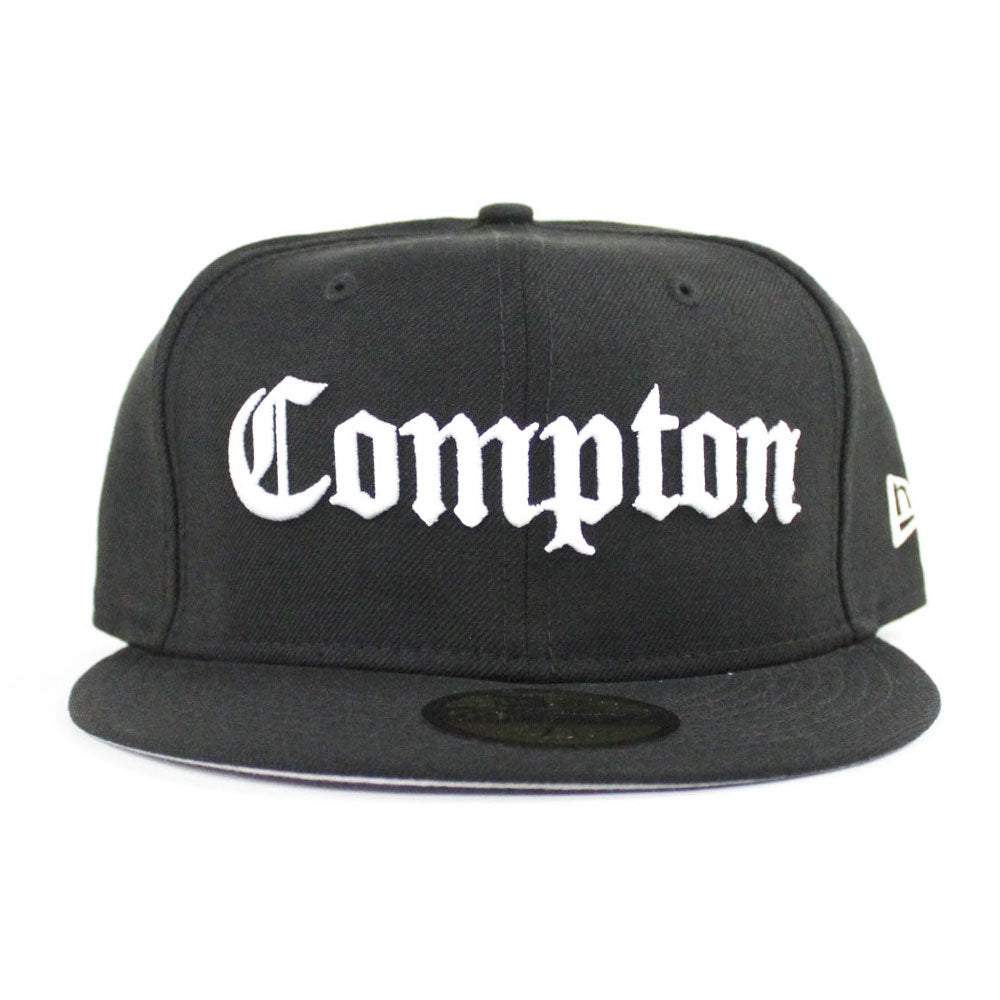 Already a classic in its own right is this 'Compton' New Era Fitted hat in the old english font. We're seeing a resurgence due to the NWA movie (Straight Outta Compton) with more requests. This week we bring it back in Black Compton Fitted Cap form with a Gray Under Brim.