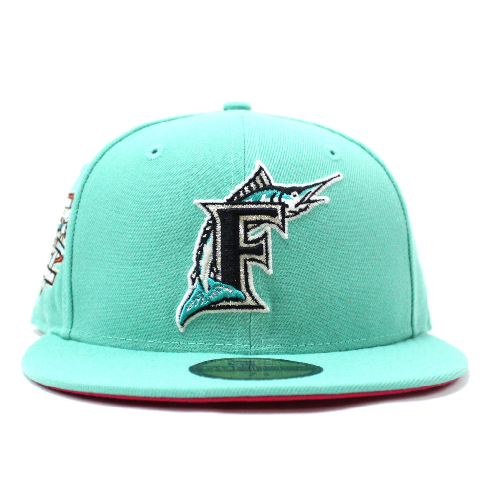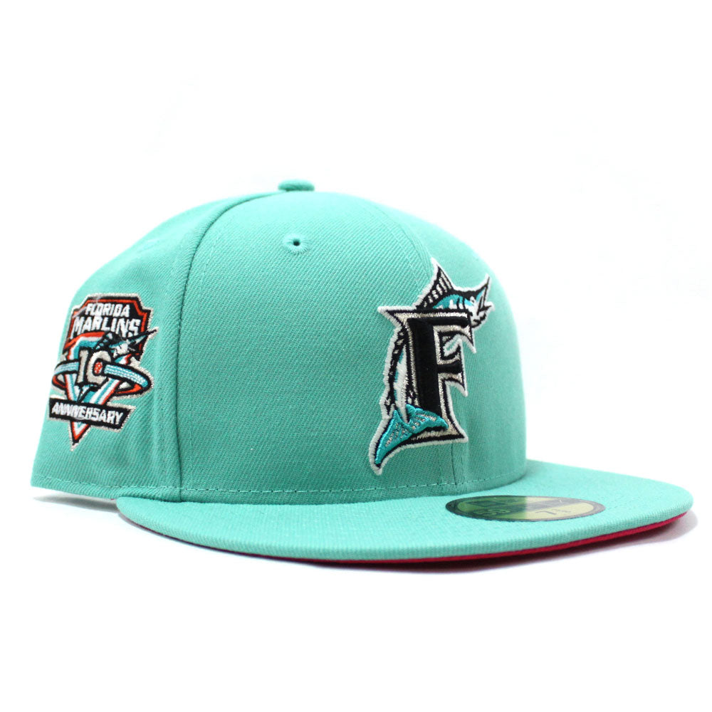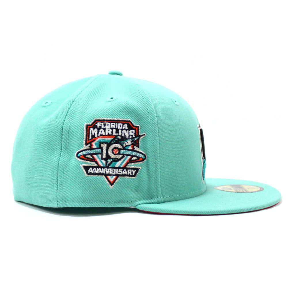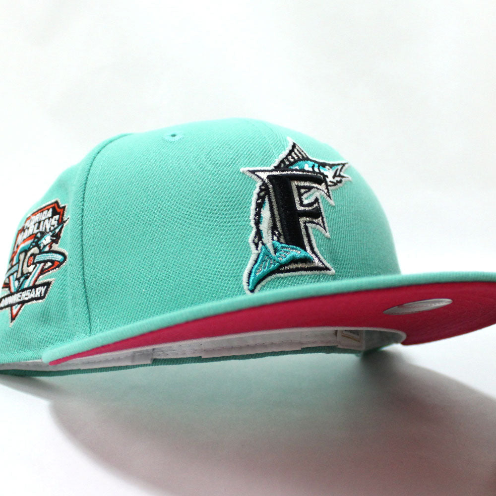 Florida Marlins 10th Anniversary Patch New Era 59Fifty Fitted Hat is Clear Mint and Beet Under Brim. Now available online & in-store!