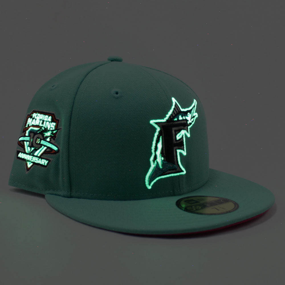 Florida Marlins 10th Anniversary New Era 59Fifty Fitted Hat (Glow in the Dark Clear Mint Beet Under brim)
