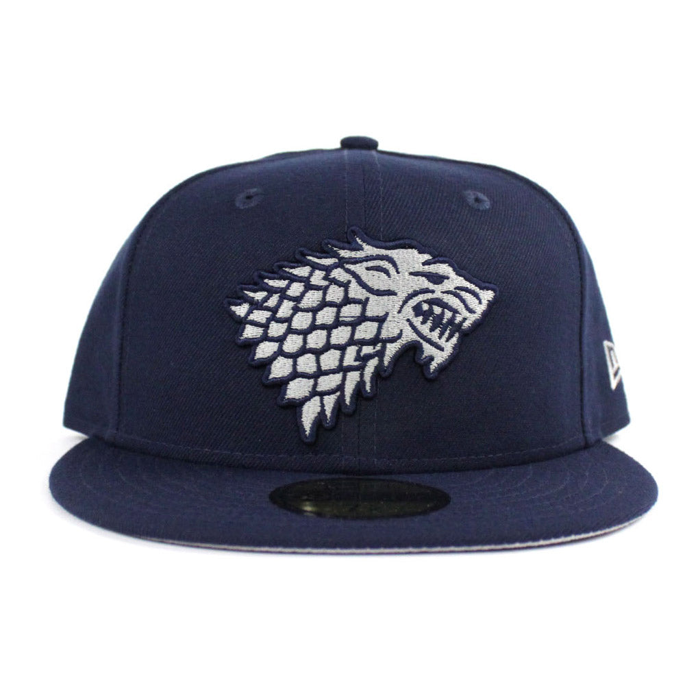Game of Thrones House Stark of Winterfell Direwolf New Era 59Fifty Fitted Hat (Navy Gray Under Brim)