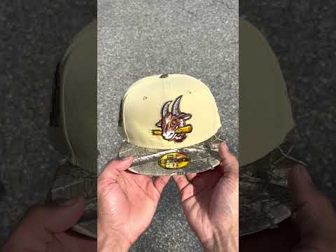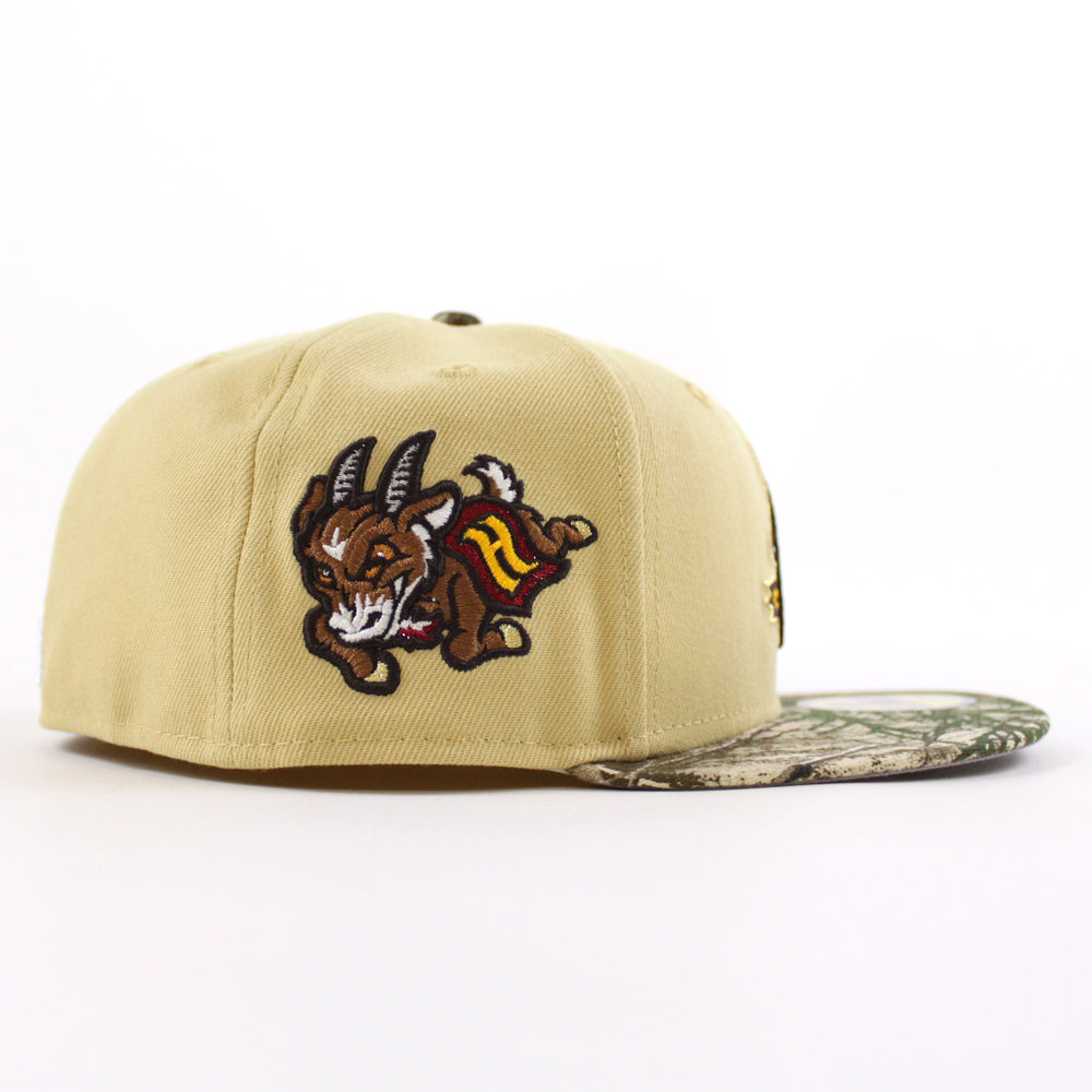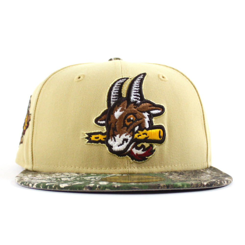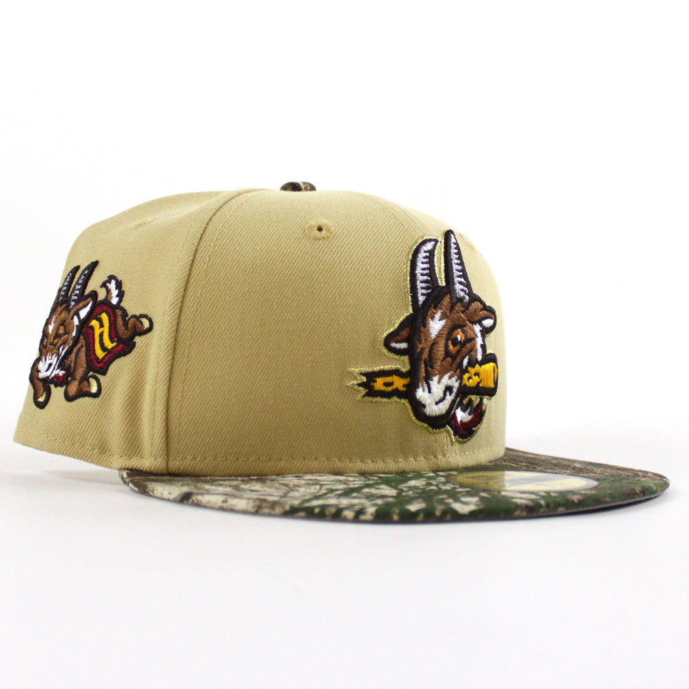 HARTFORD YARD GOATS Goat Patch New Era 59Fifty Fitted Cap in Vegas Gold, Real Tree and Gray Under Brim.