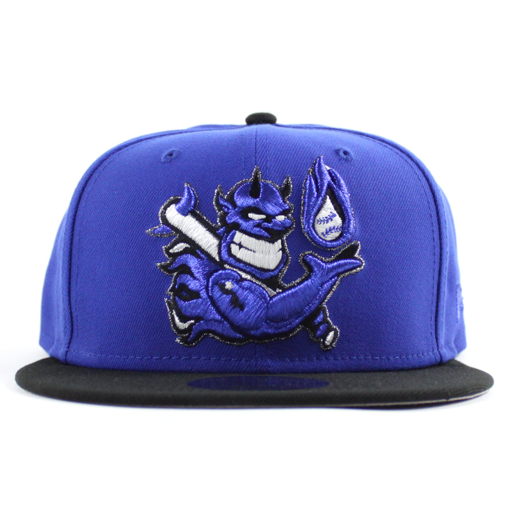 Blue Devils Hellrazors New Era 59Fifty Fitted Hat is Majestic Blue, Black and Gray Under Brim.