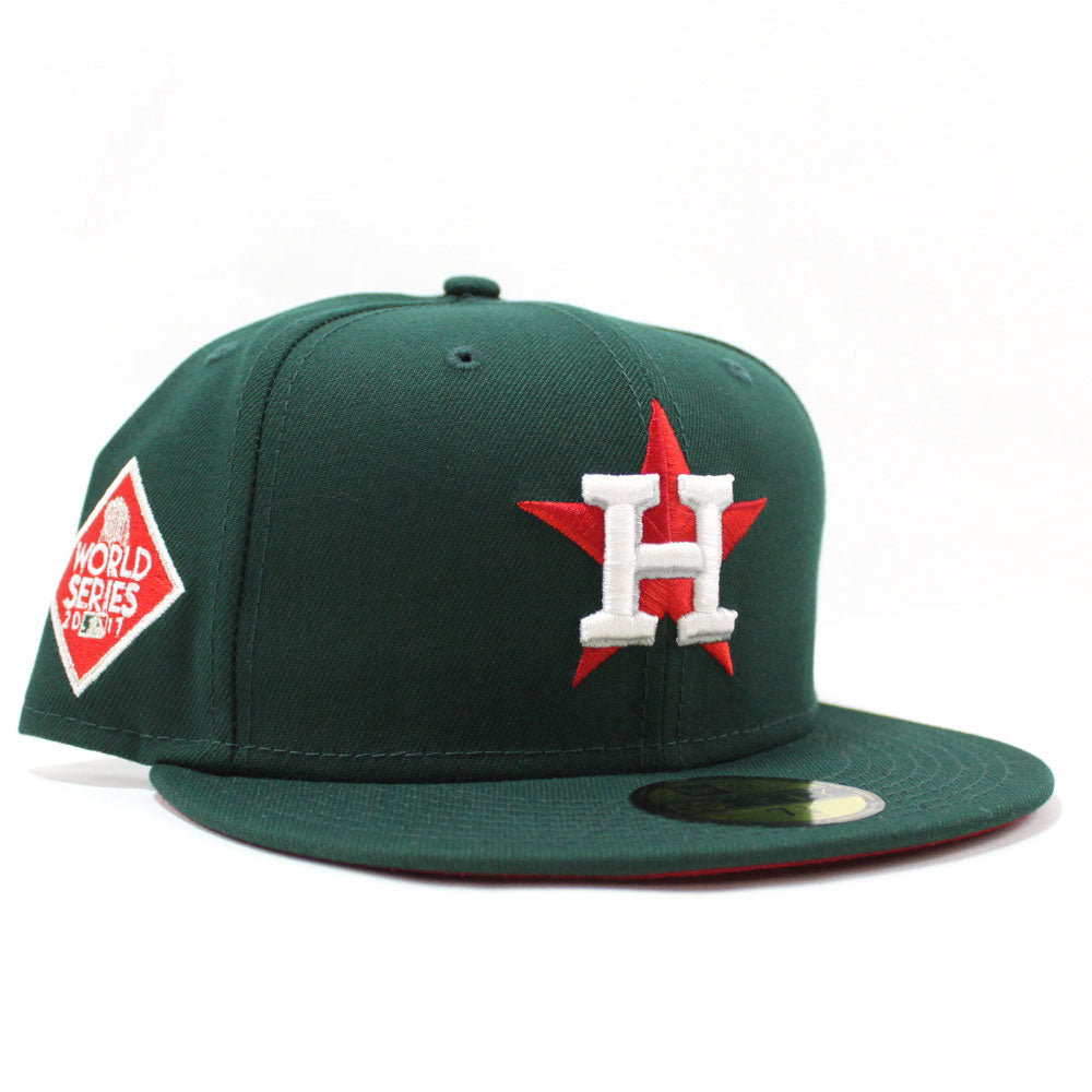 Houston Astros 2017 World Series New Era 59Fifty Fitted Hat in Green with Red Under Brim.